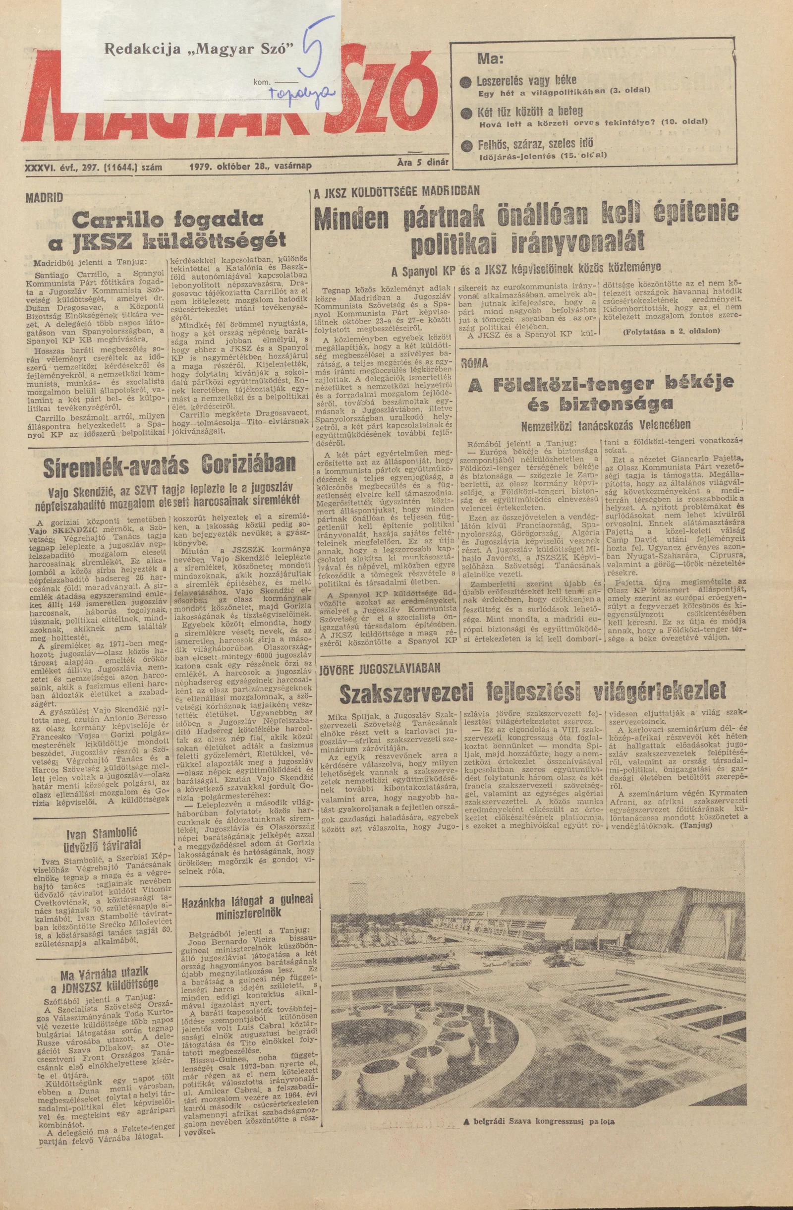 Magyar Szó, 36. évf. 1979. október 28. 297. sz. 1–32. oldal
