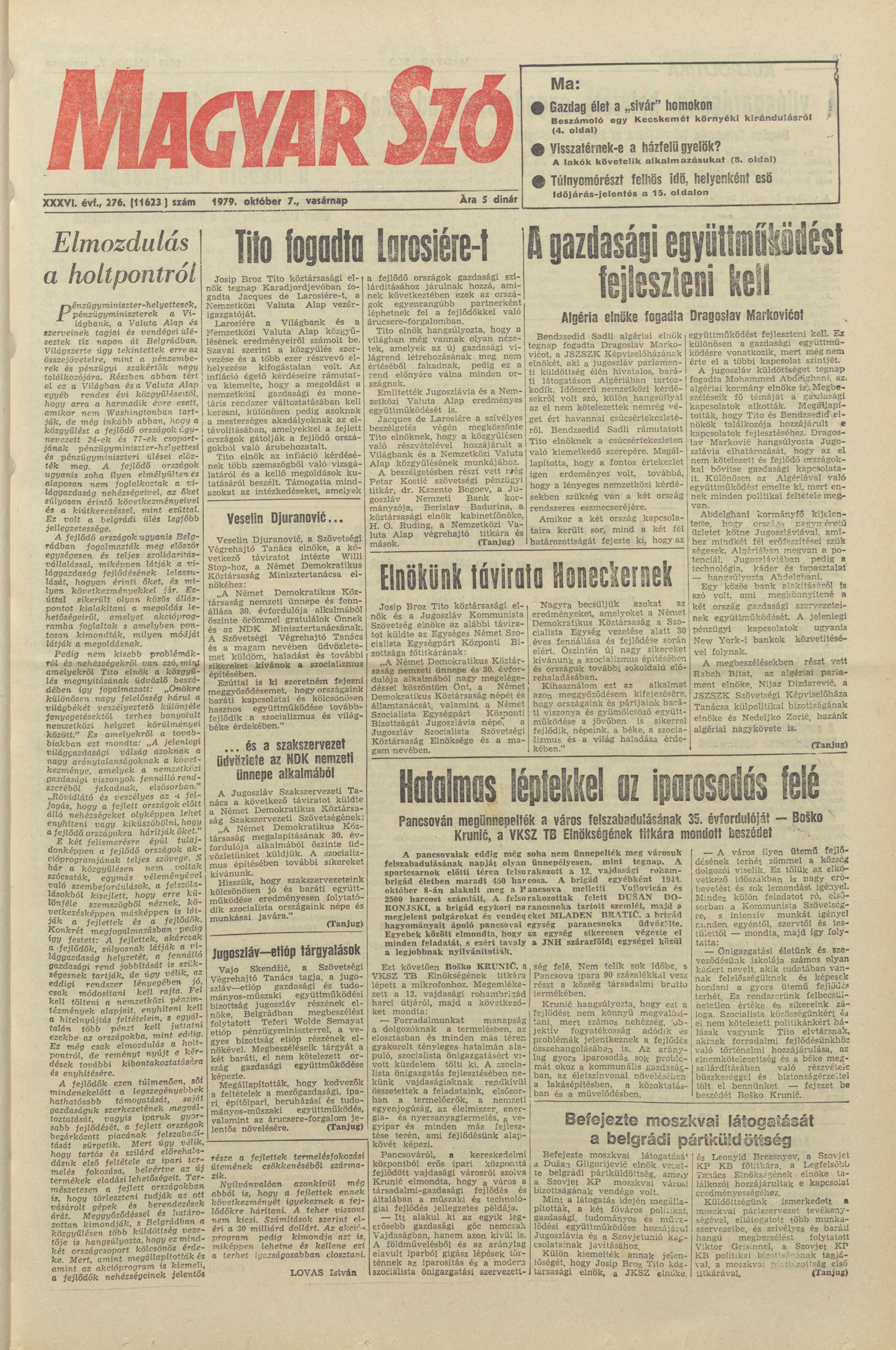 Magyar Szó, 36. évf. 1979. október 7. 276. sz. 1–32. oldal