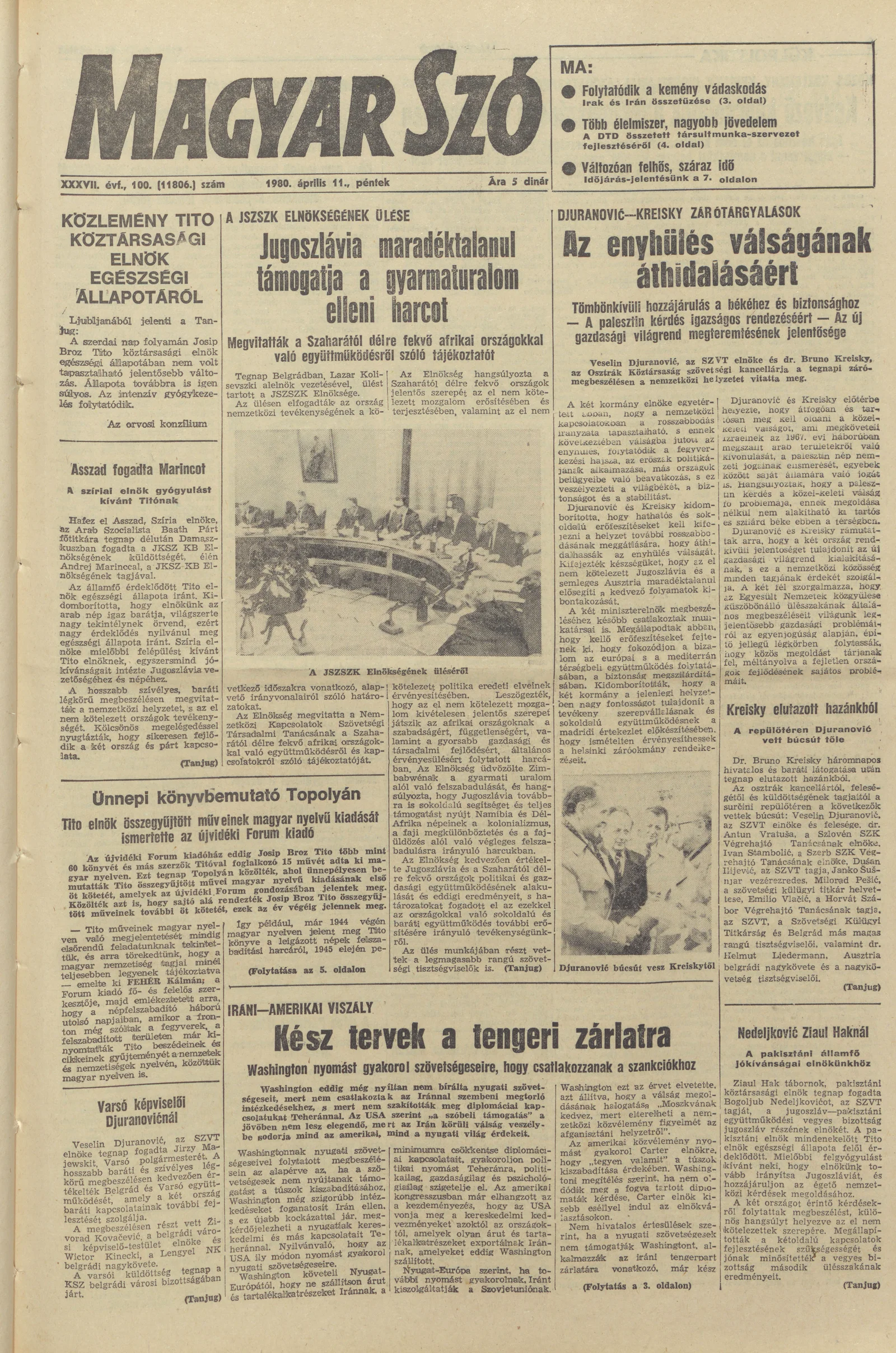 Magyar Szó, 37. évf. 1980. április 11. 100. sz. 1–20. oldal
