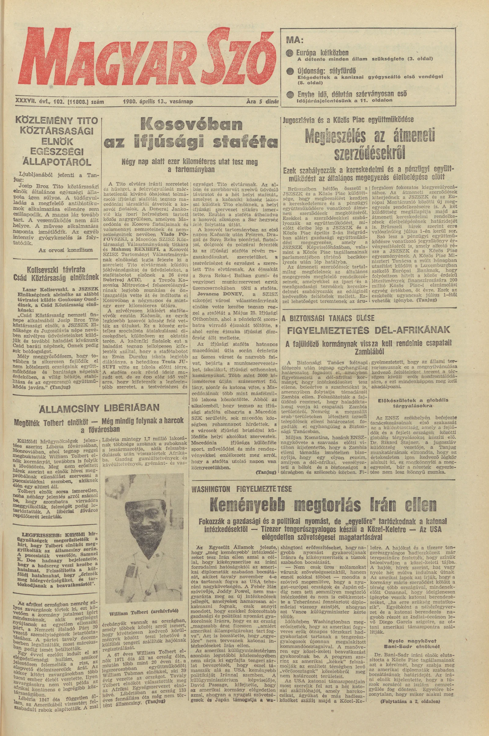 Magyar Szó, 37. évf. 1980. április 13. 102. sz. 1–32. oldal