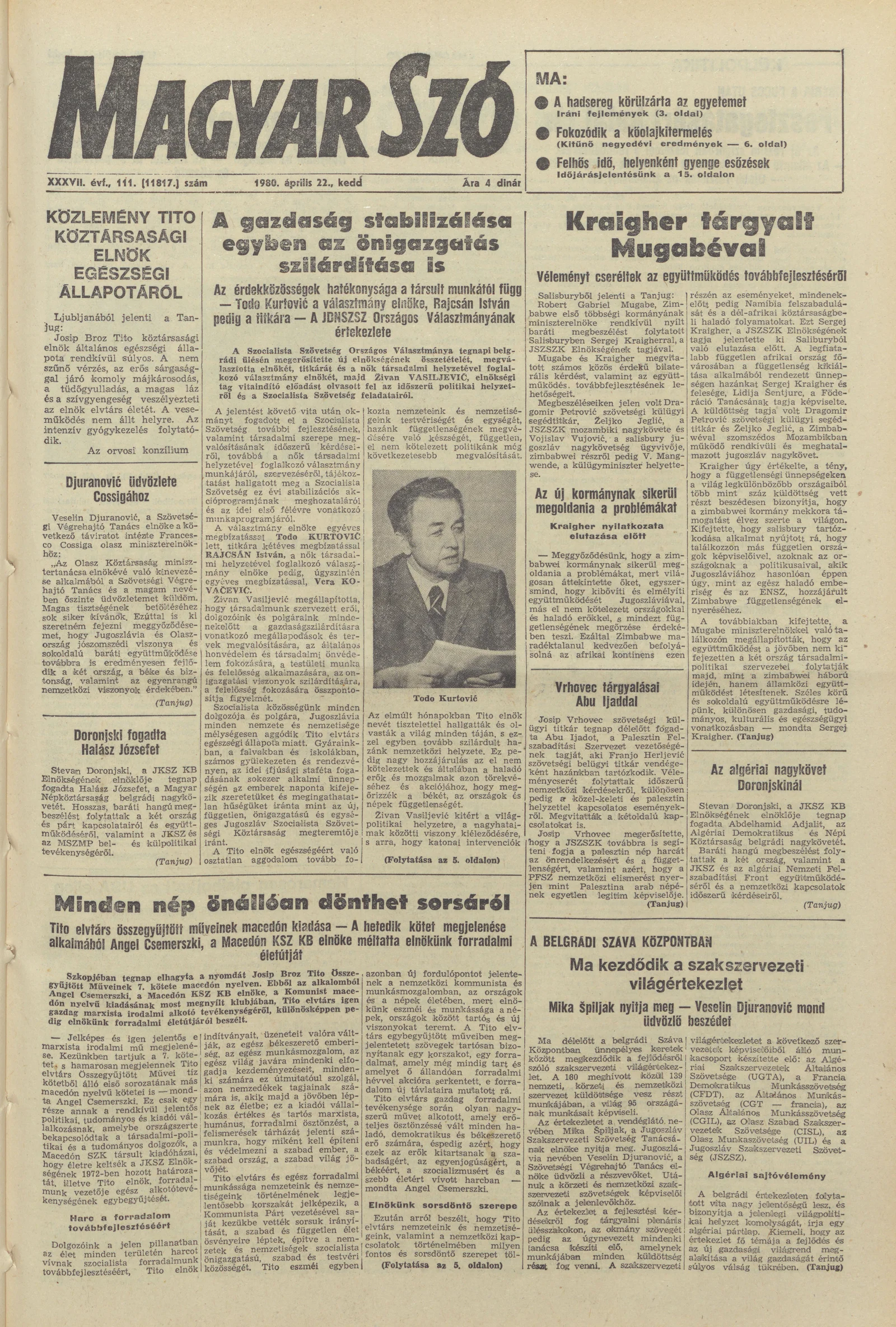 Magyar Szó, 37. évf. 1980. április 22. 111. sz. 1–20. oldal