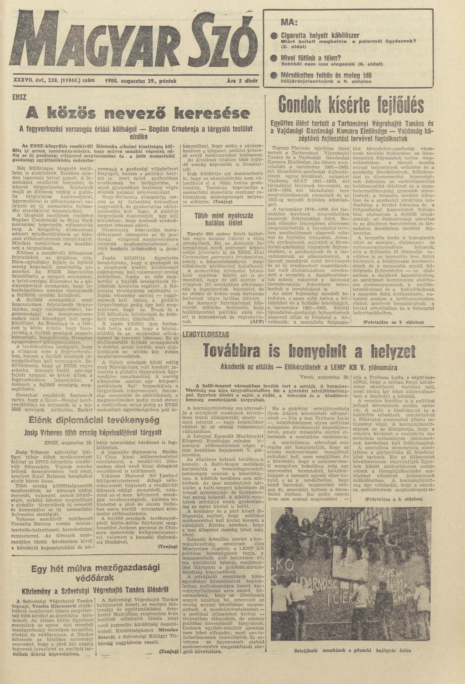 Magyar Szó, 37. évf. 1980. augusztus 29. 238. sz. 1–20. oldal