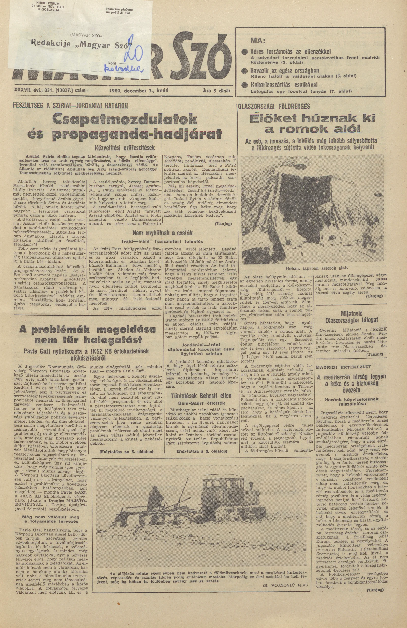 Magyar Szó, 37. évf. 1980. december 2. 331. sz. 1–16. oldal