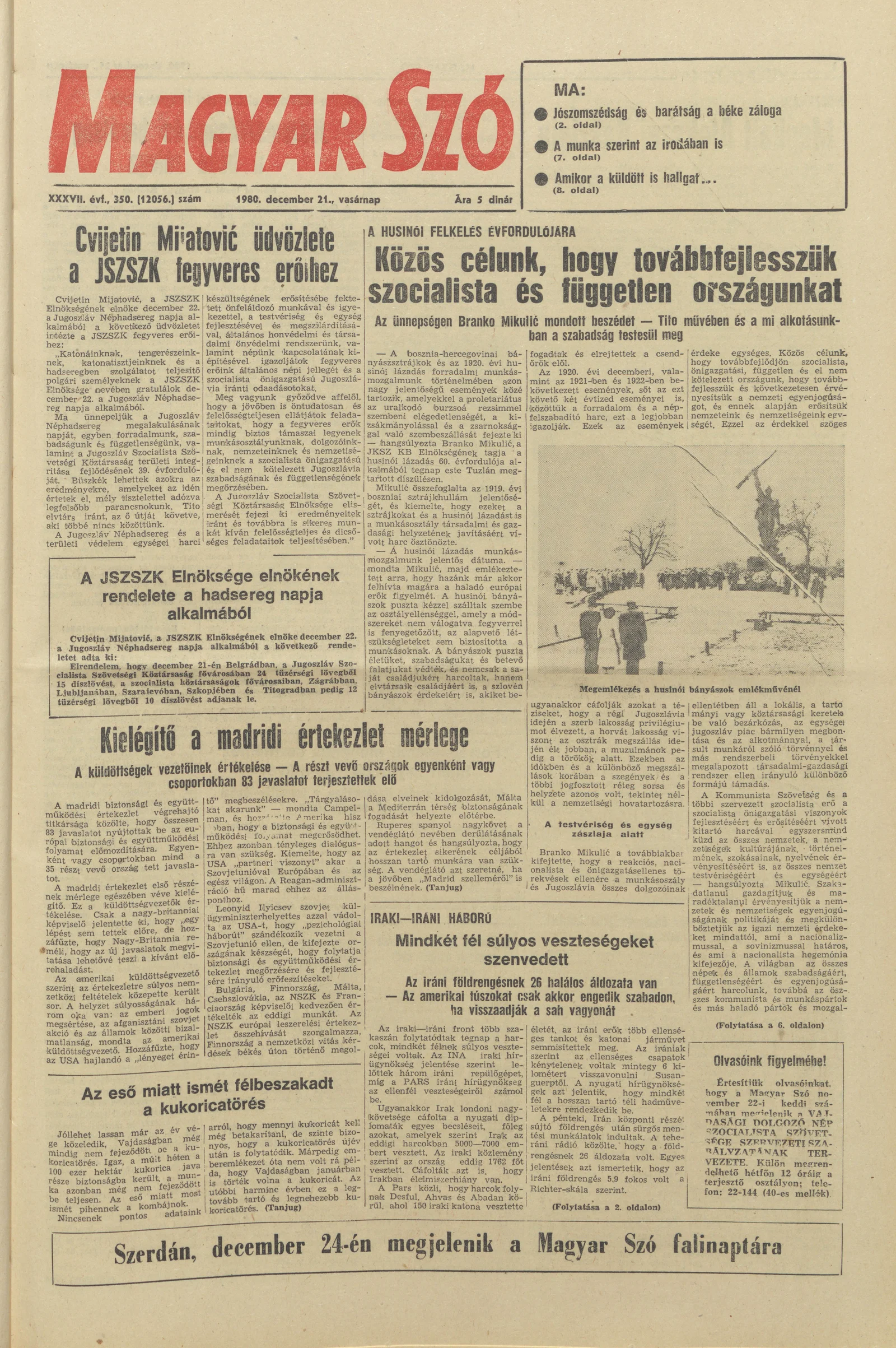 Magyar Szó, 37. évf. 1980. december 21. 350. sz. 1–28. oldal