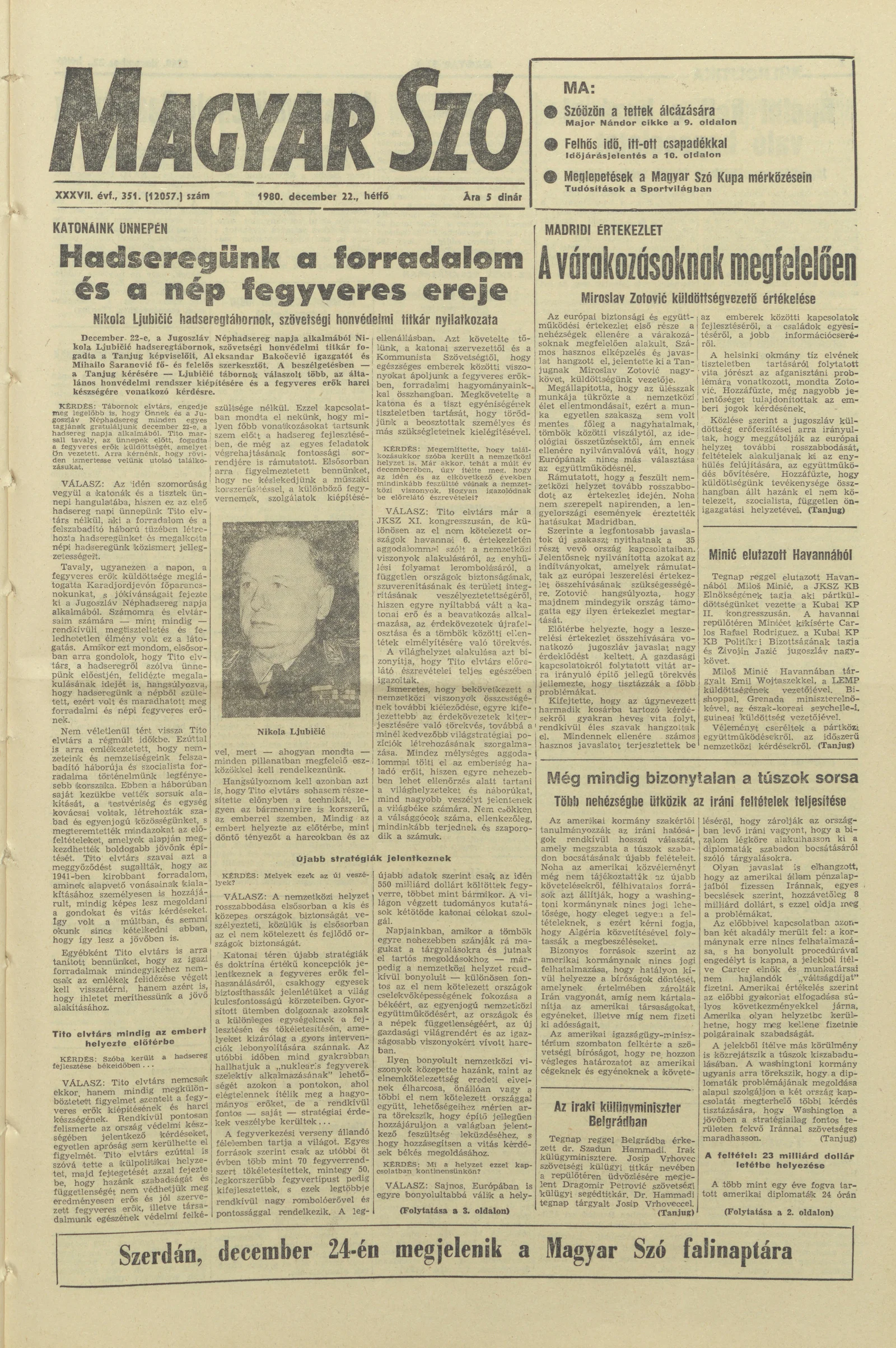 Magyar Szó, 37. évf. 1980. december 22. 351. sz. 1–20. oldal