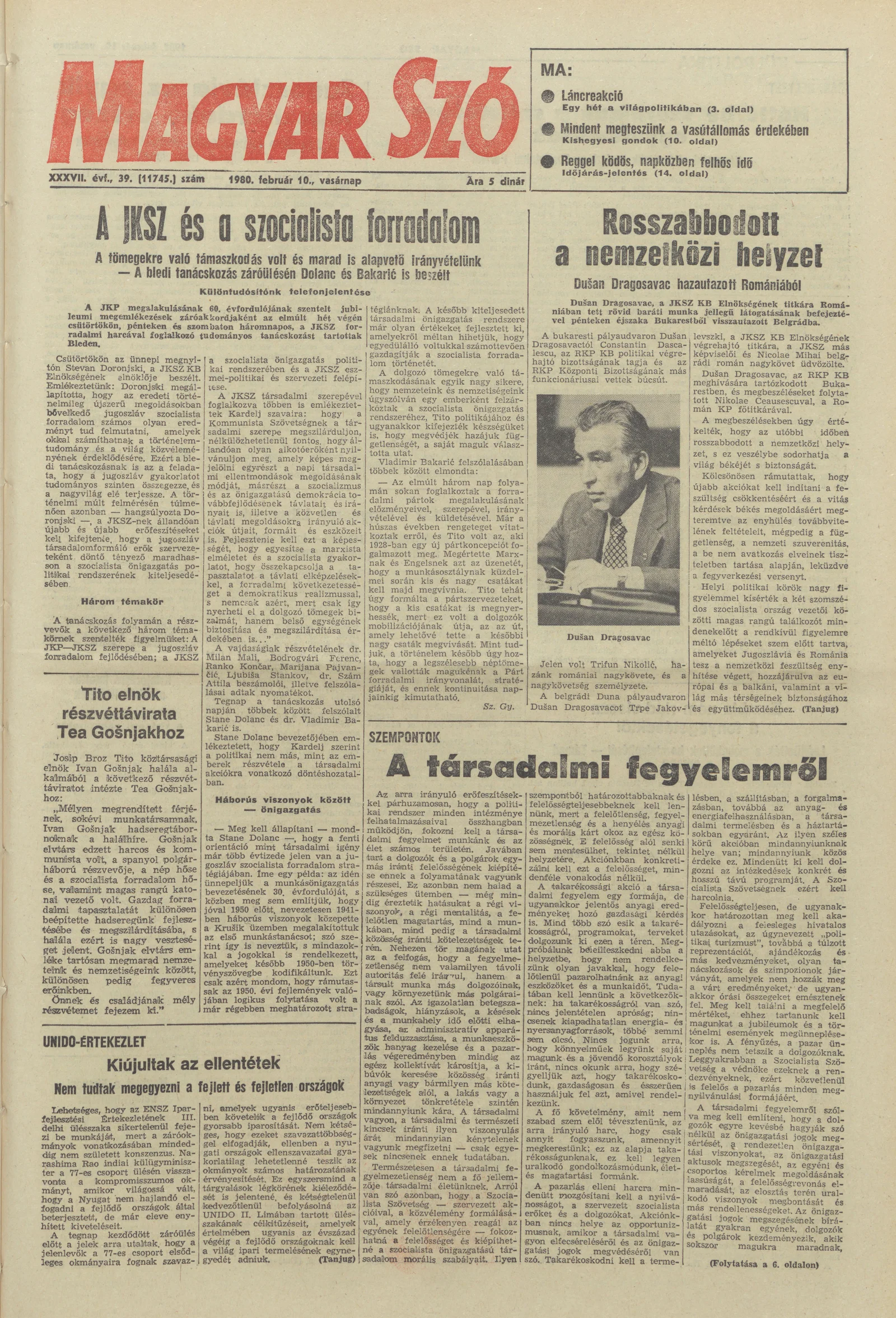 Magyar Szó, 37. évf. 1980. február 10. 39. sz. 1–28. oldal
