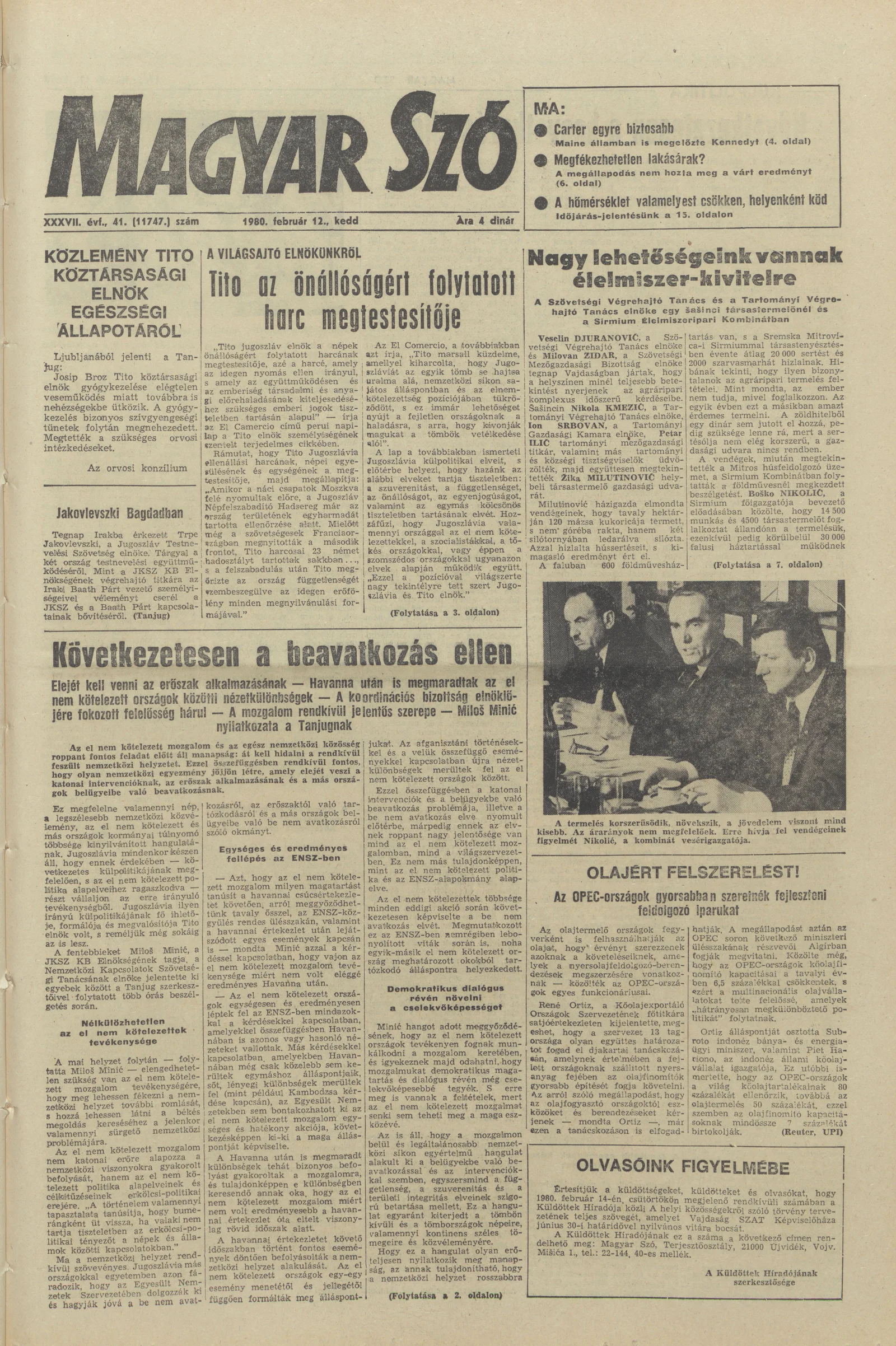 Magyar Szó, 37. évf. 1980. február 12. 41. sz. 1–20. oldal