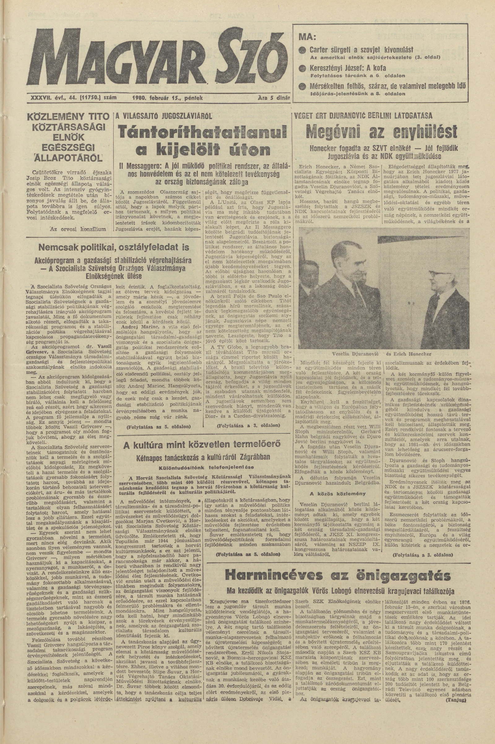 Magyar Szó, 37. évf. 1980. február 15. 44. sz. 1–20. oldal