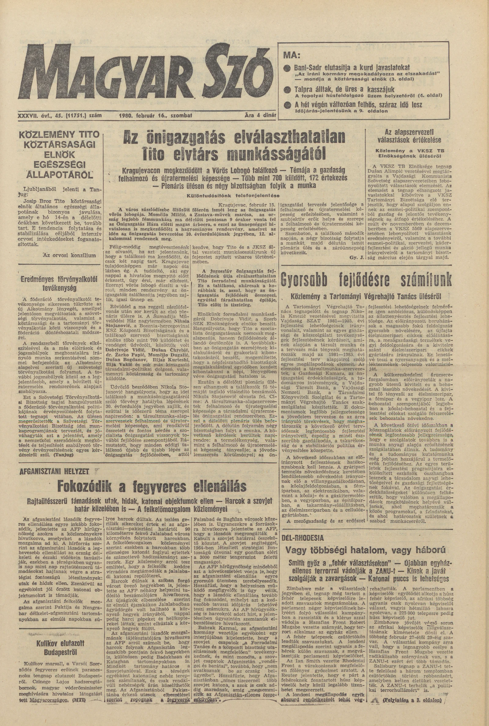 Magyar Szó, 37. évf. 1980. február 16. 45. sz. 1–20. oldal