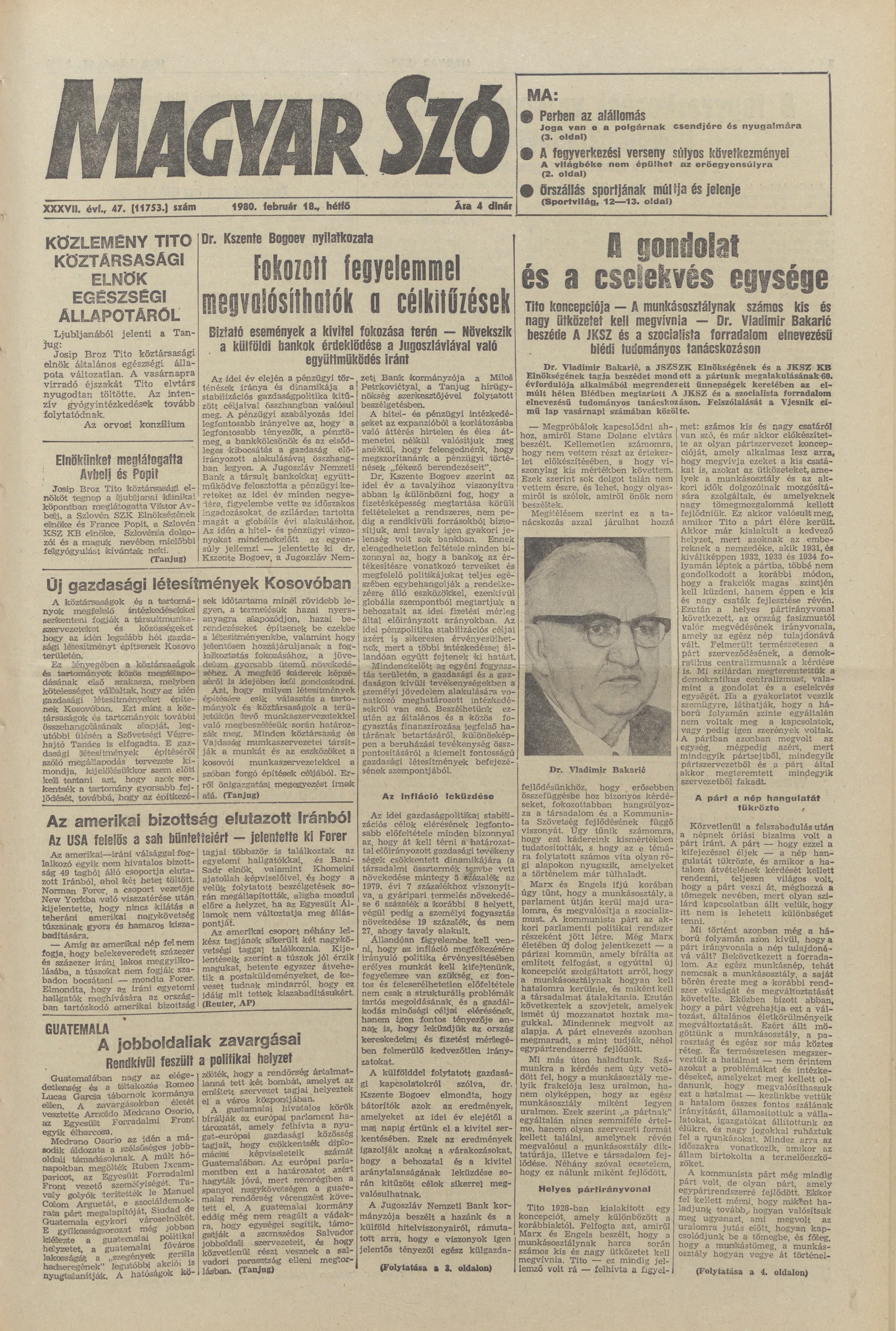 Magyar Szó, 37. évf. 1980. február 18. 47. sz. 1–16. oldal