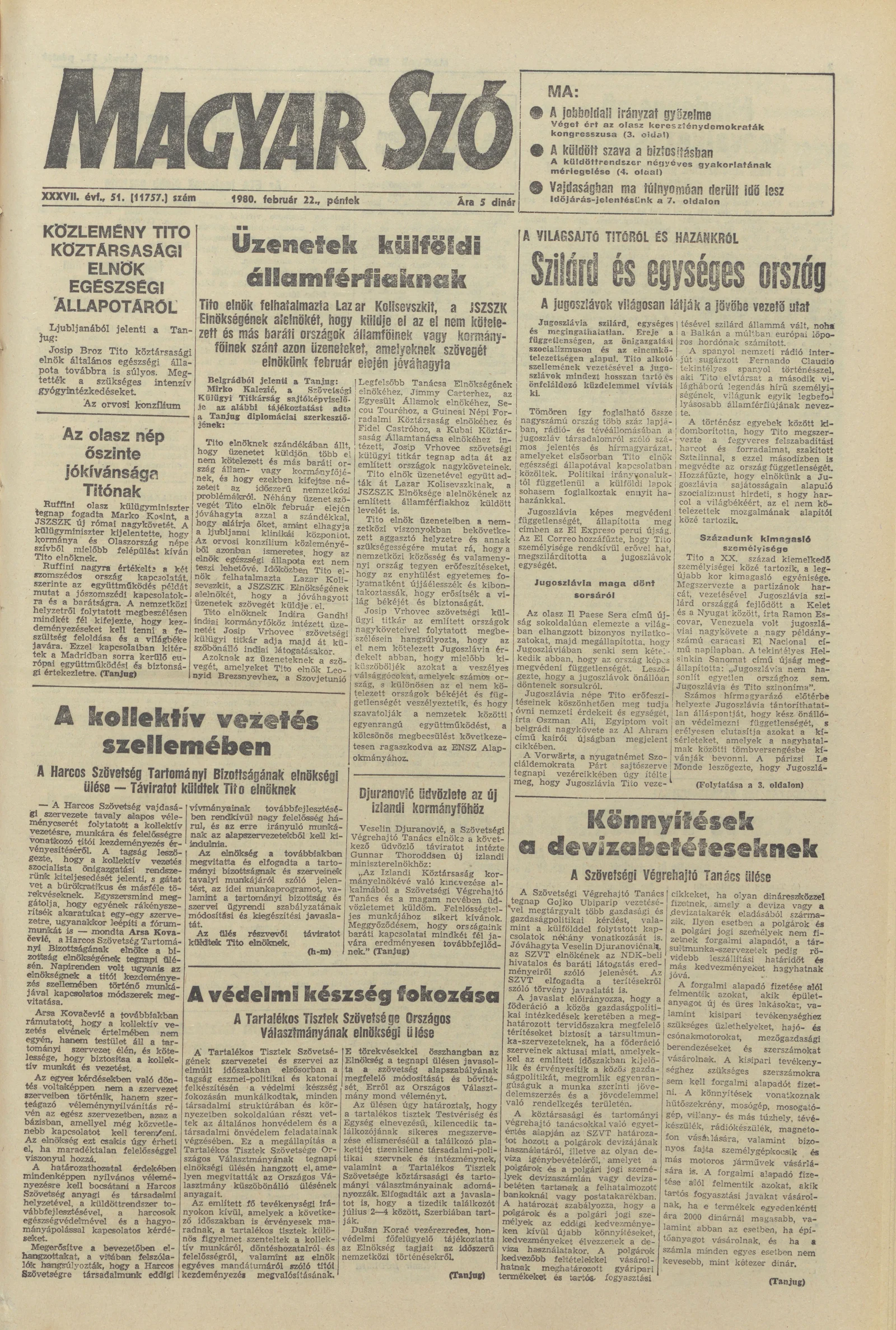 Magyar Szó, 37. évf. 1980. február 22. 51. sz. 1–20. oldal