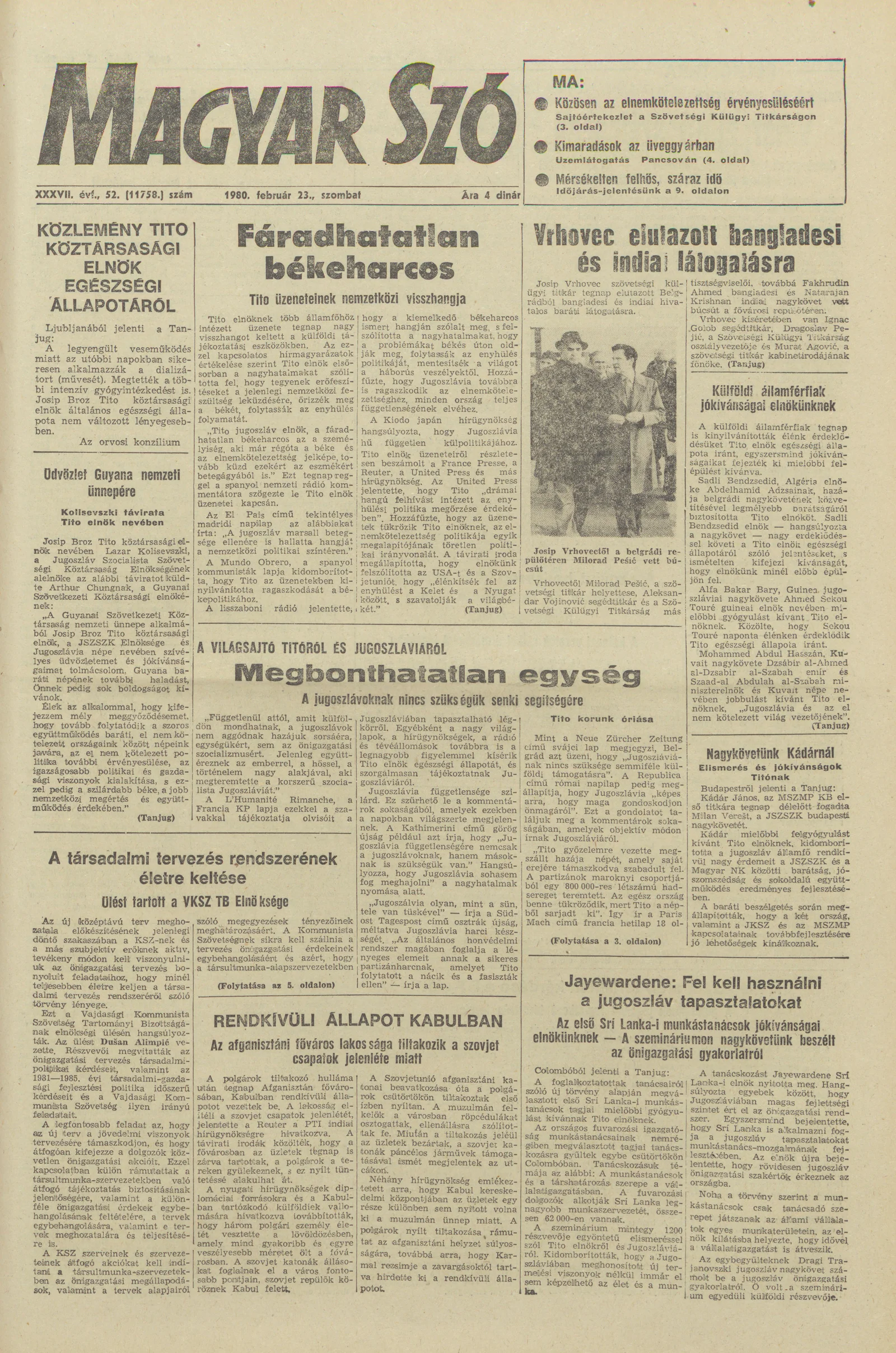 Magyar Szó, 37. évf. 1980. február 23. 52. sz. 1–20. oldal