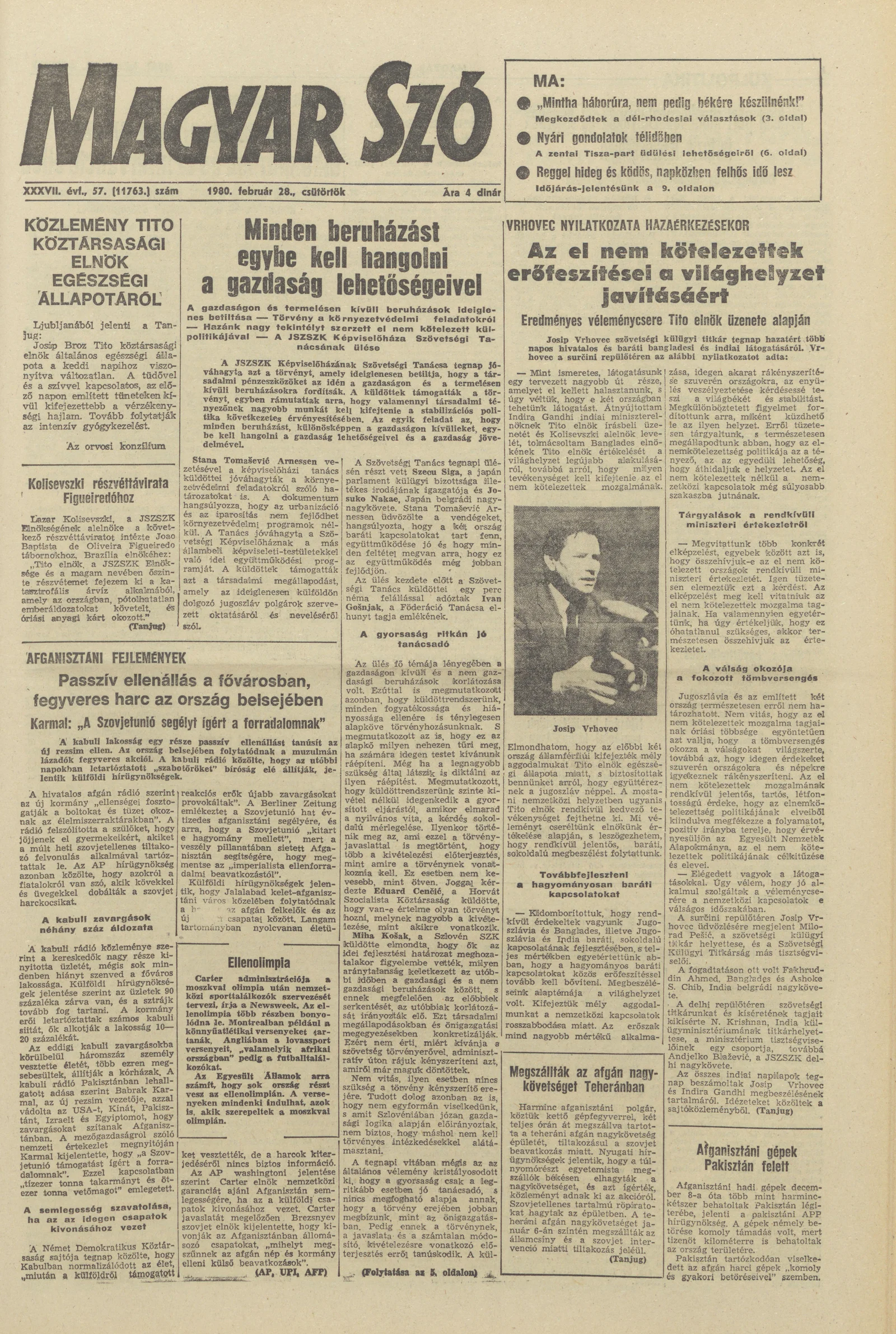 Magyar Szó, 37. évf. 1980. február 28. 57. sz. 1–20. oldal