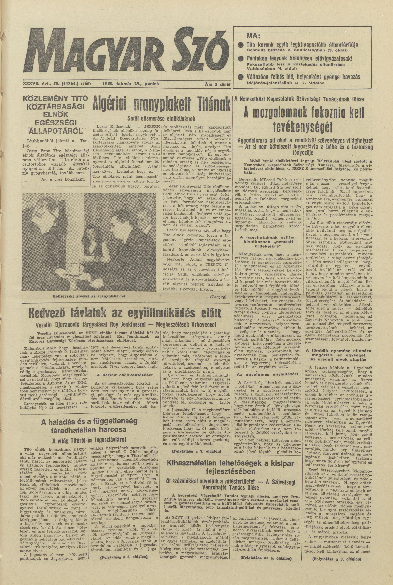 Magyar Szó, 37. évf. 1980. február 29. 58. sz. 1–20. oldal