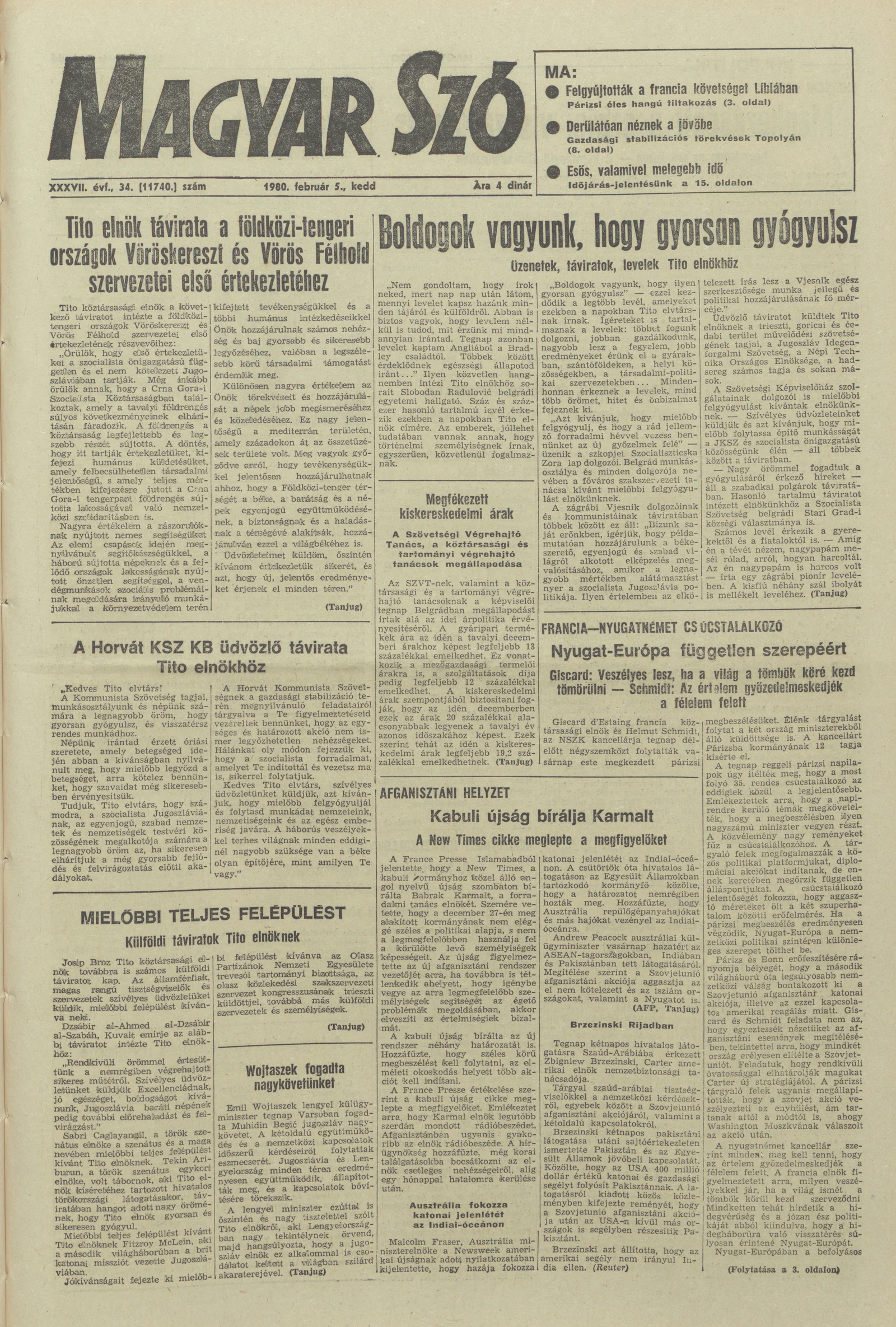 Magyar Szó, 37. évf. 1980. február 5. 34. sz. 1–20. oldal