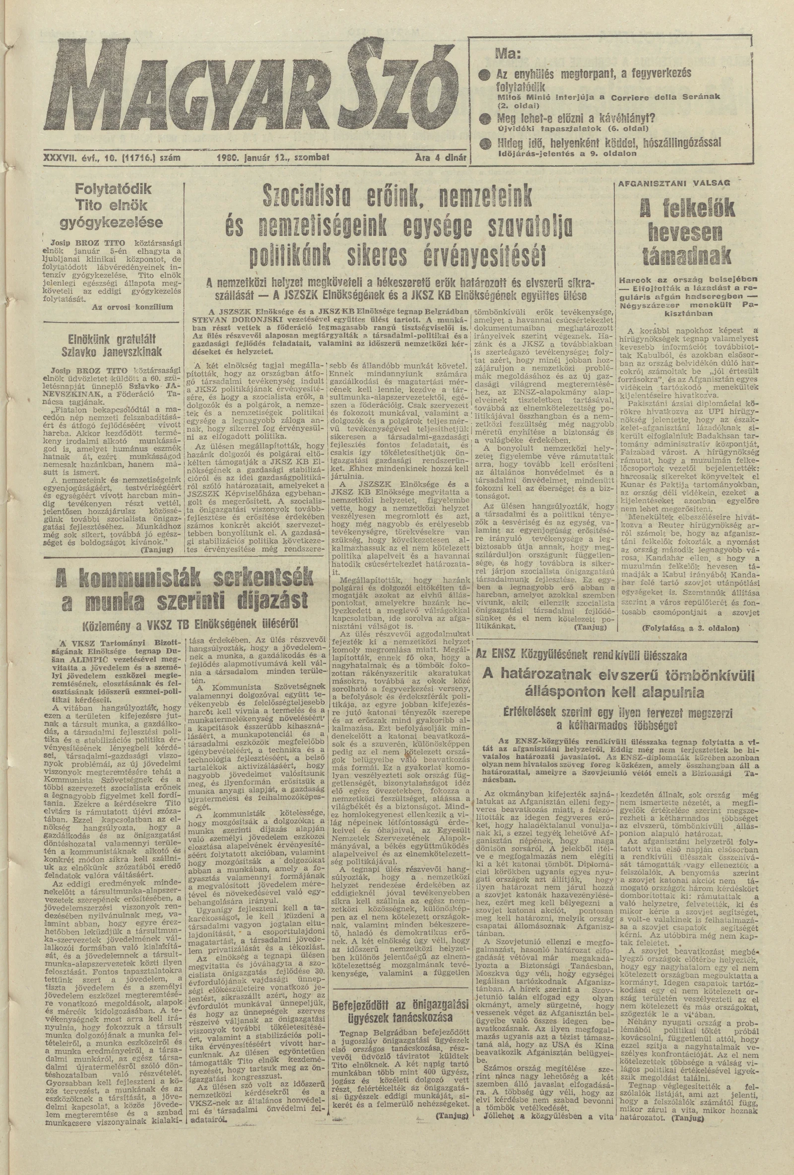 Magyar Szó, 37. évf. 1980. január 12. 10. sz. 1–20. oldal