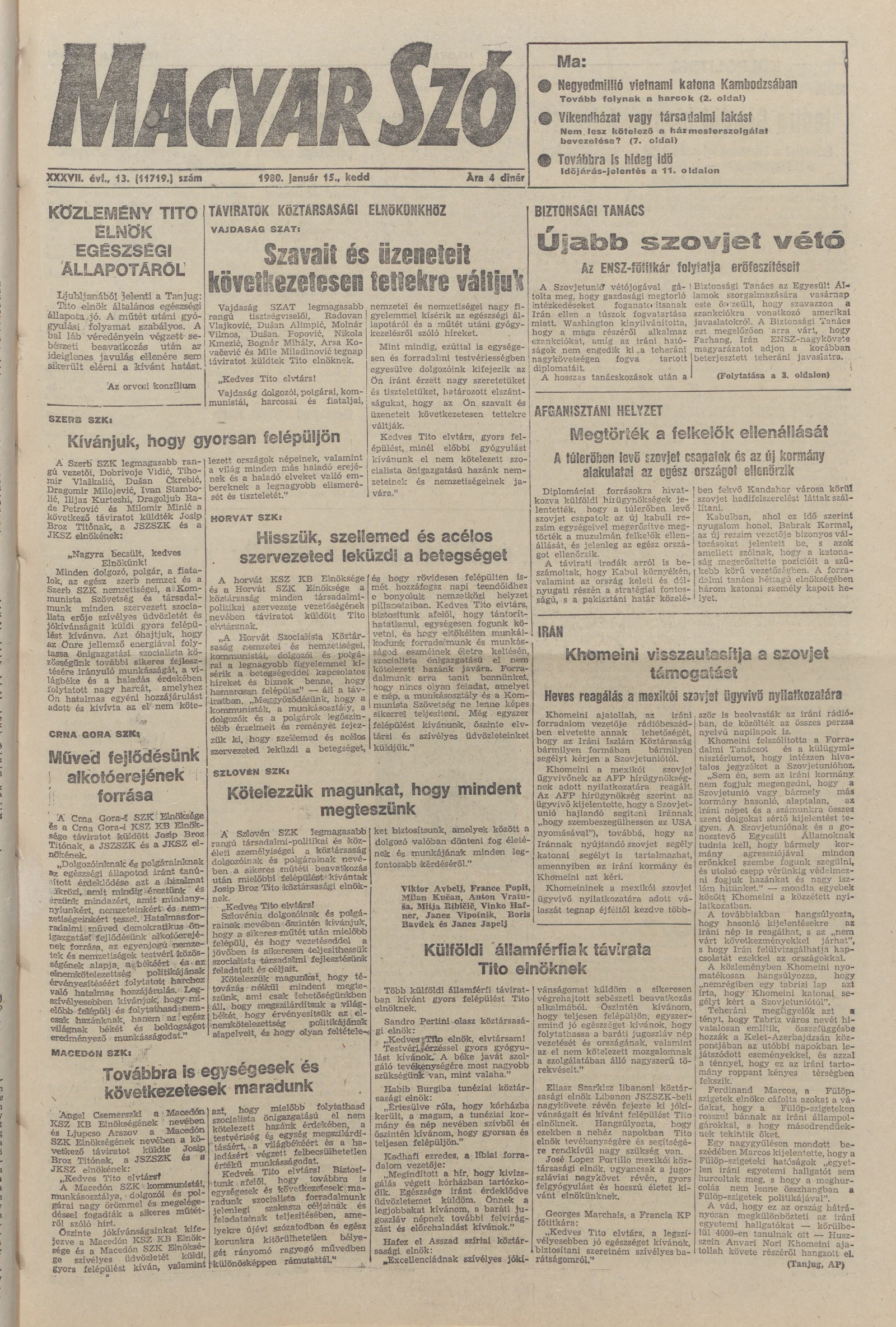 Magyar Szó, 37. évf. 1980. január 15. 13. sz. 1–20. oldal