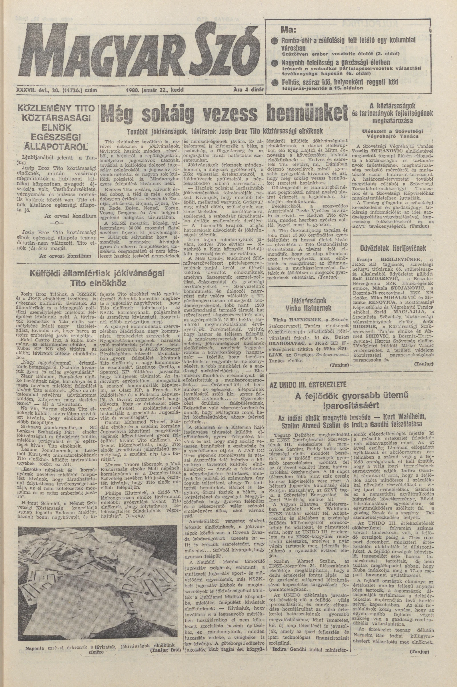 Magyar Szó, 37. évf. 1980. január 22. 20. sz. 1–20. oldal