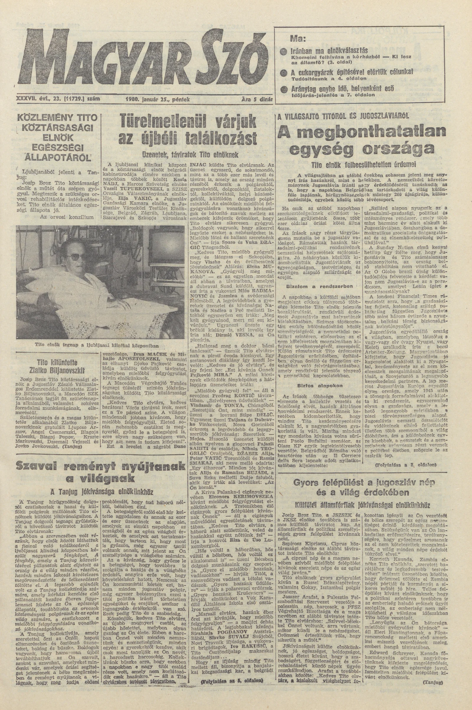 Magyar Szó, 37. évf. 1980. január 25. 23. sz. 1–20. oldal