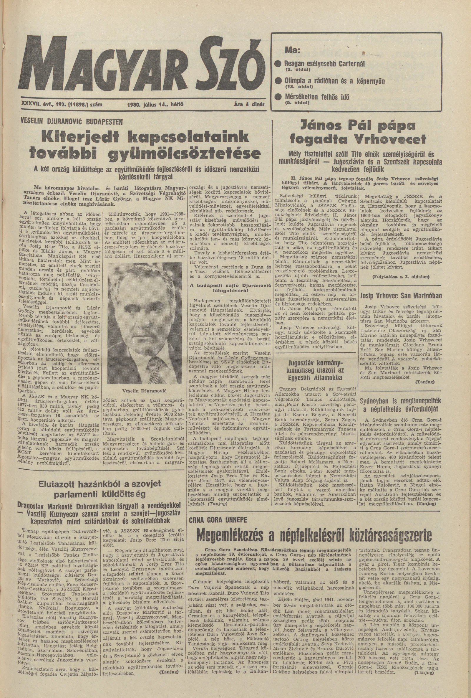 Magyar Szó, 37. évf. 1980. július 14. 192. sz. 1–16. oldal
