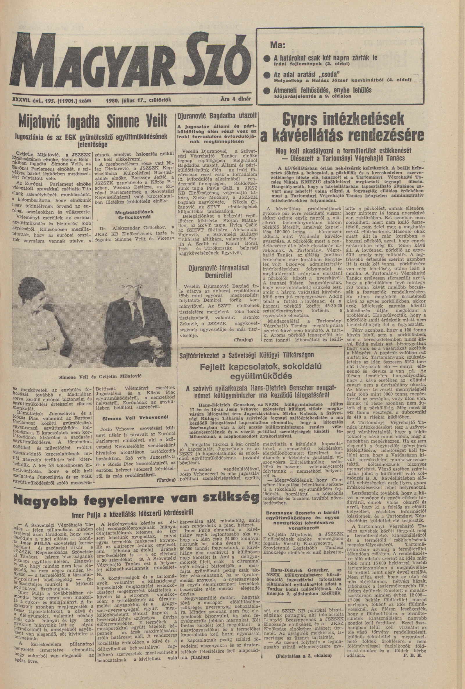 Magyar Szó, 37. évf. 1980. július 17. 195. sz. 1–16. oldal