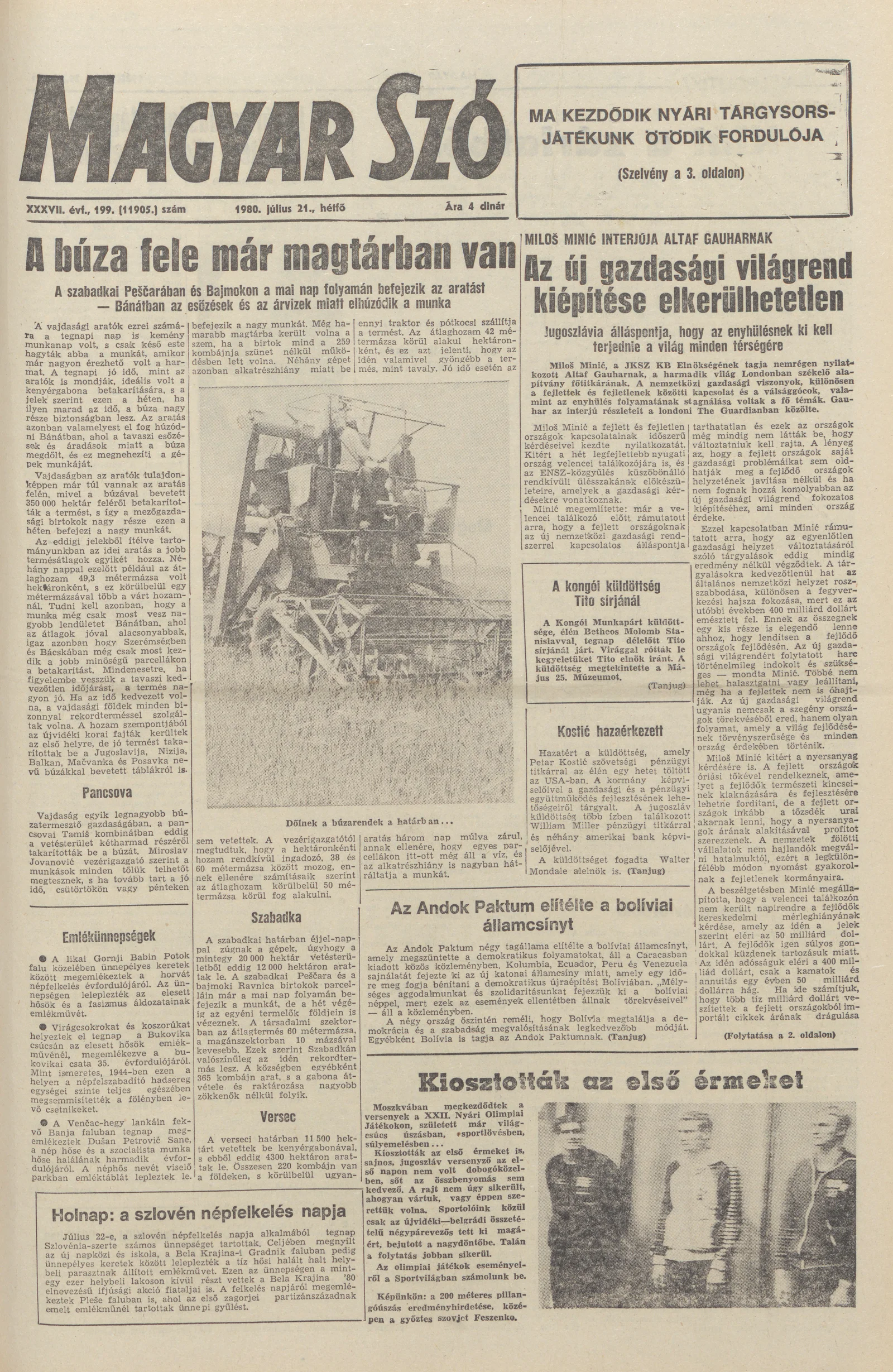 Magyar Szó, 37. évf. 1980. július 21. 199. sz. 1–16. oldal