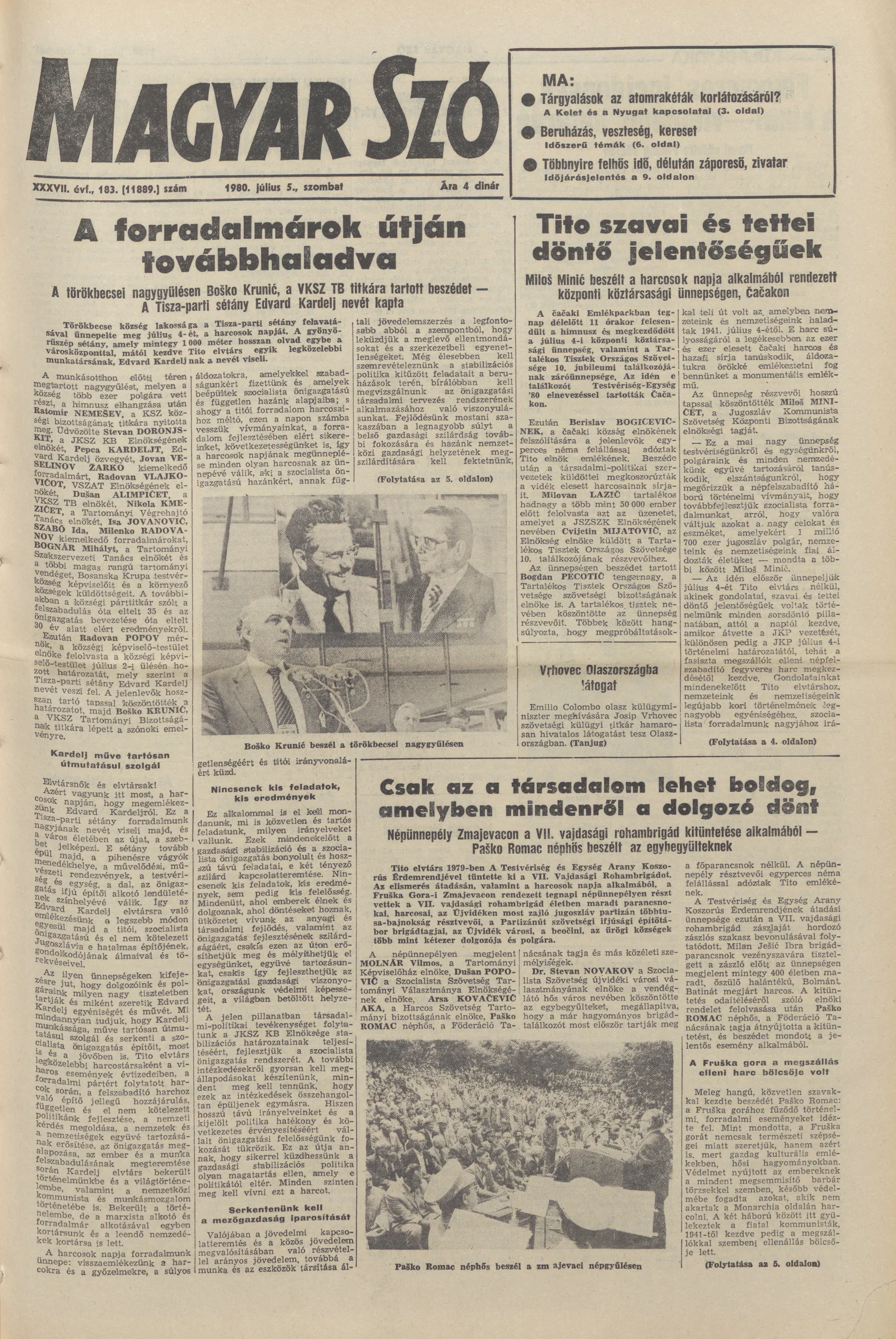 Magyar Szó, 37. évf. 1980. július 5. 183. sz. 1–20. oldal