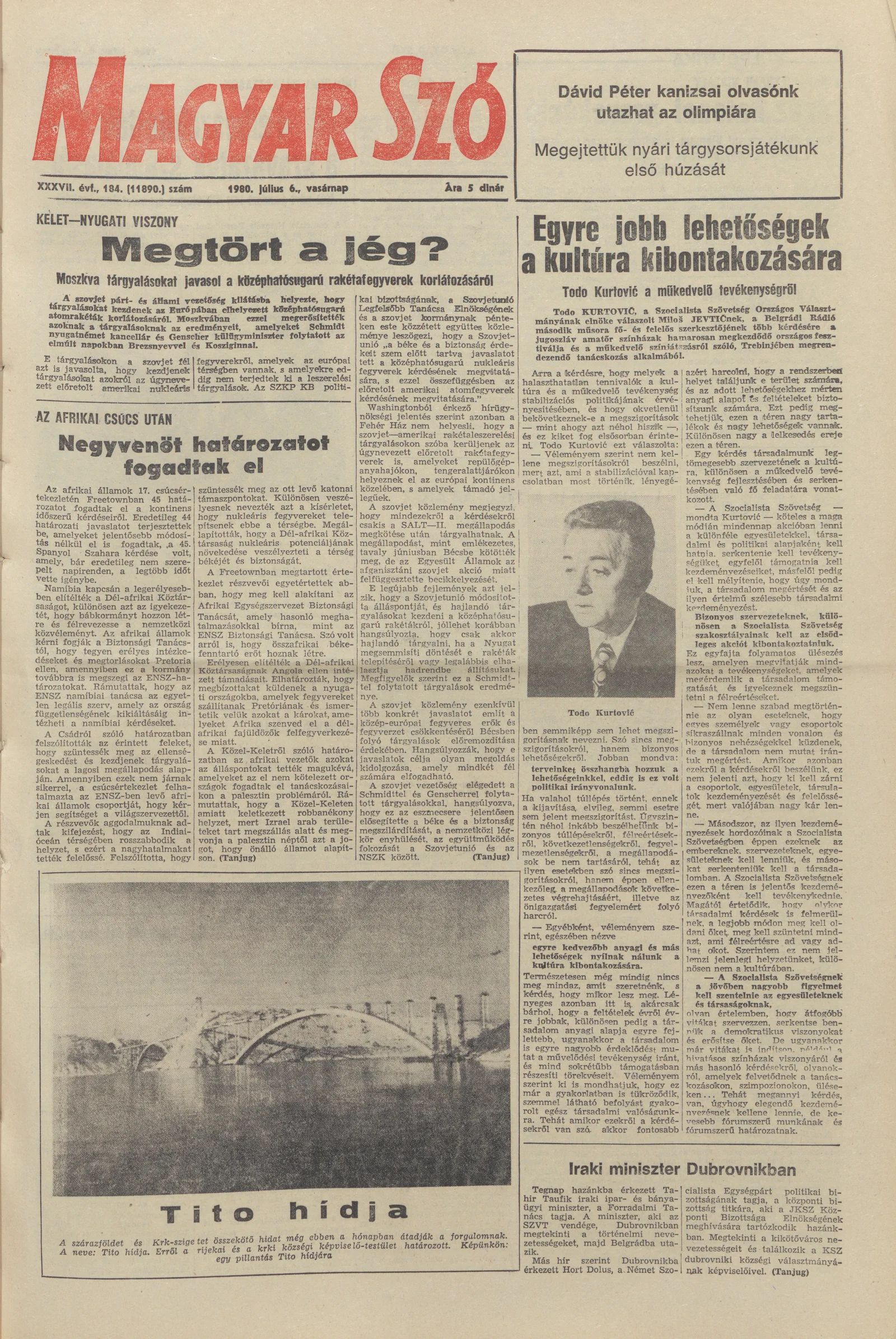 Magyar Szó, 37. évf. 1980. július 6. 184. sz. 1–28. oldal