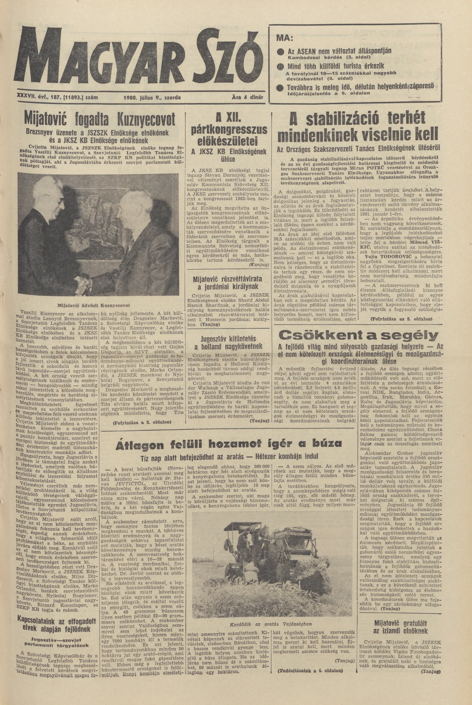 Magyar Szó, 37. évf. 1980. július 9. 187. sz. 1–20. oldal