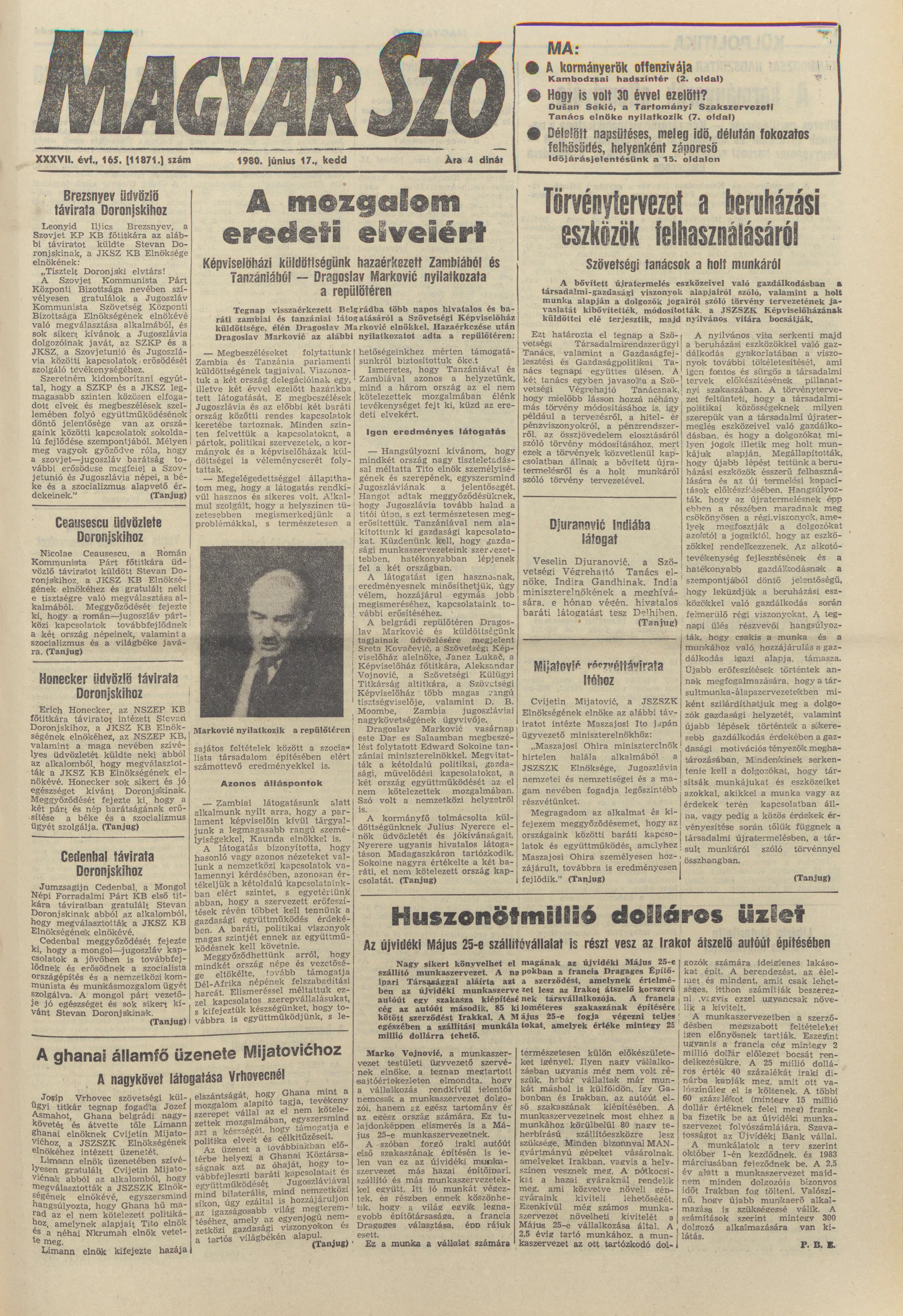 Magyar Szó, 37. évf. 1980. június 17. 165. sz. 1–20. oldal