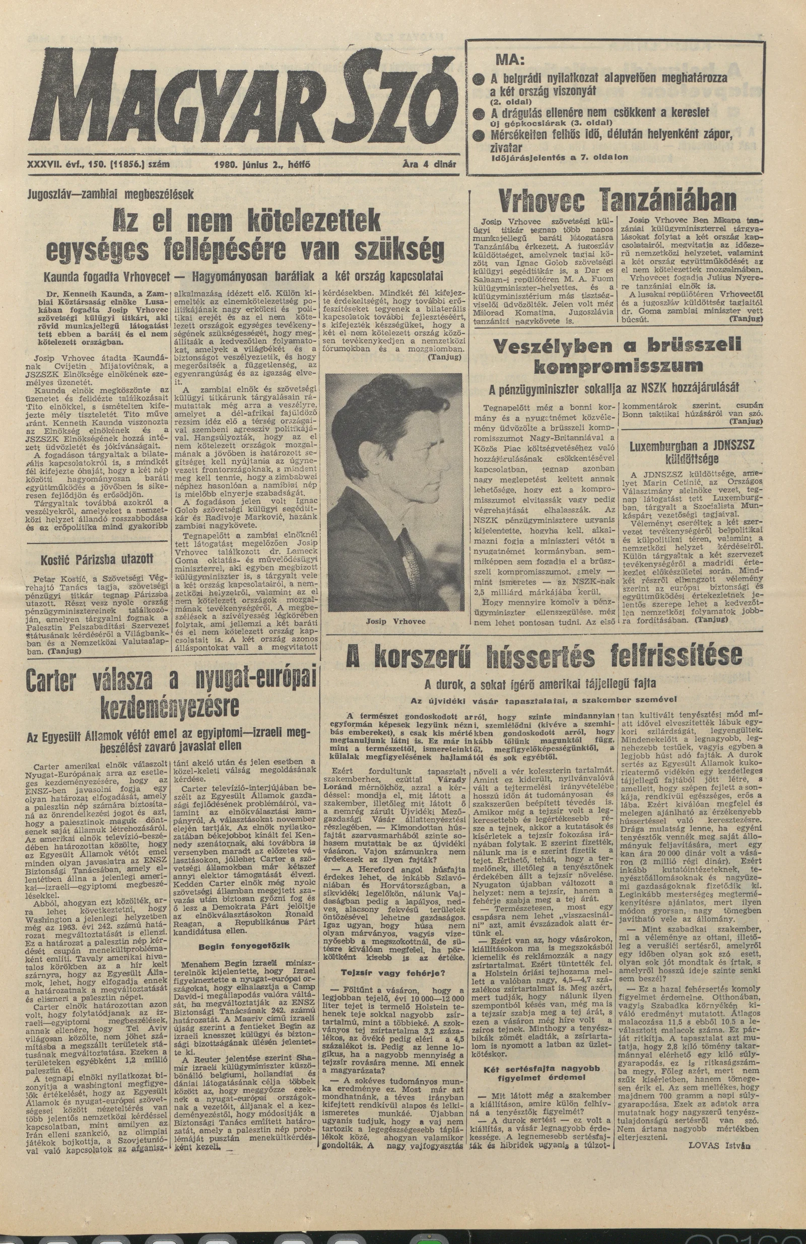 Magyar Szó, 37. évf. 1980. június 2. 150. sz. 1–16. oldal