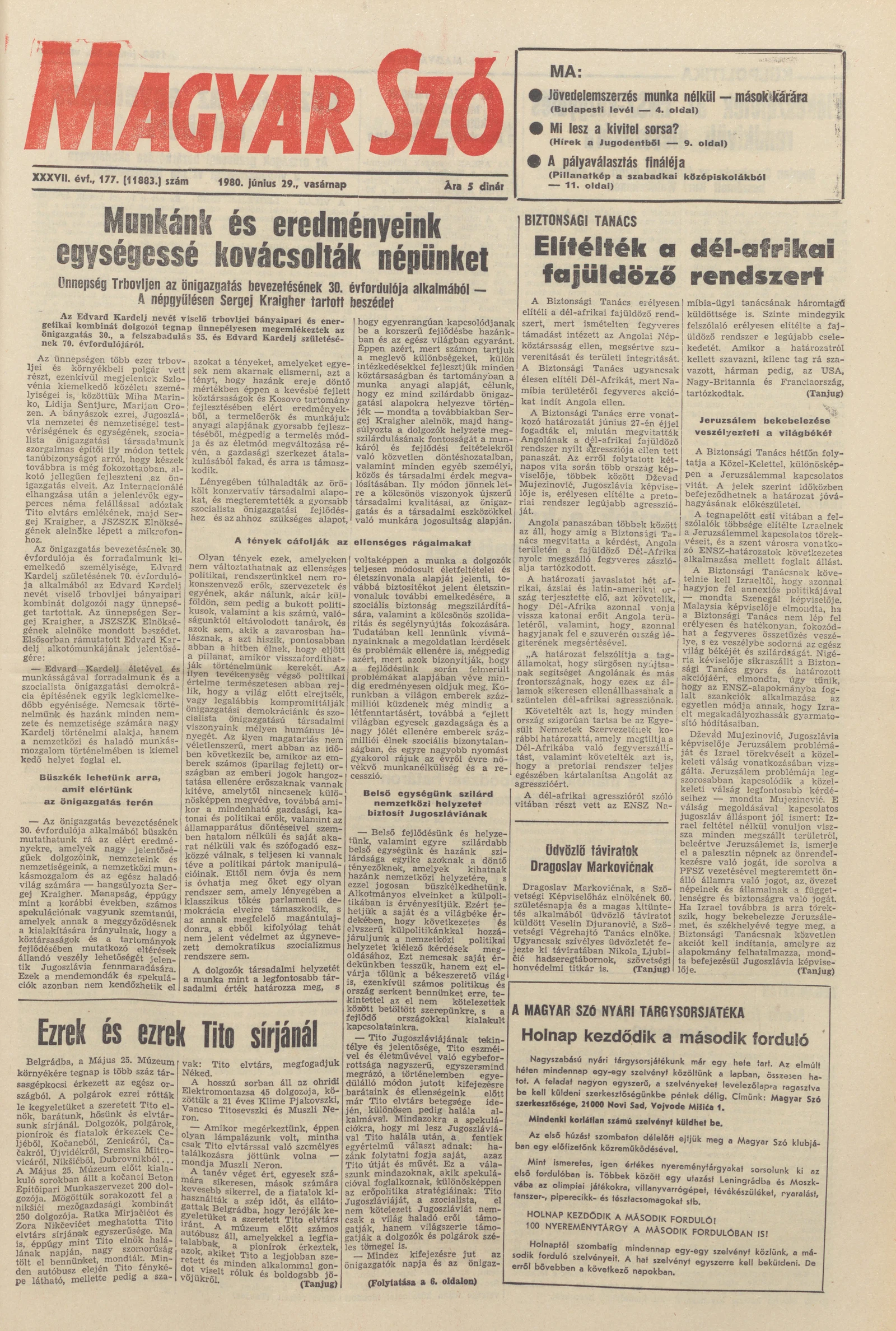Magyar Szó, 37. évf. 1980. június 29. 177. sz. 1–28. oldal
