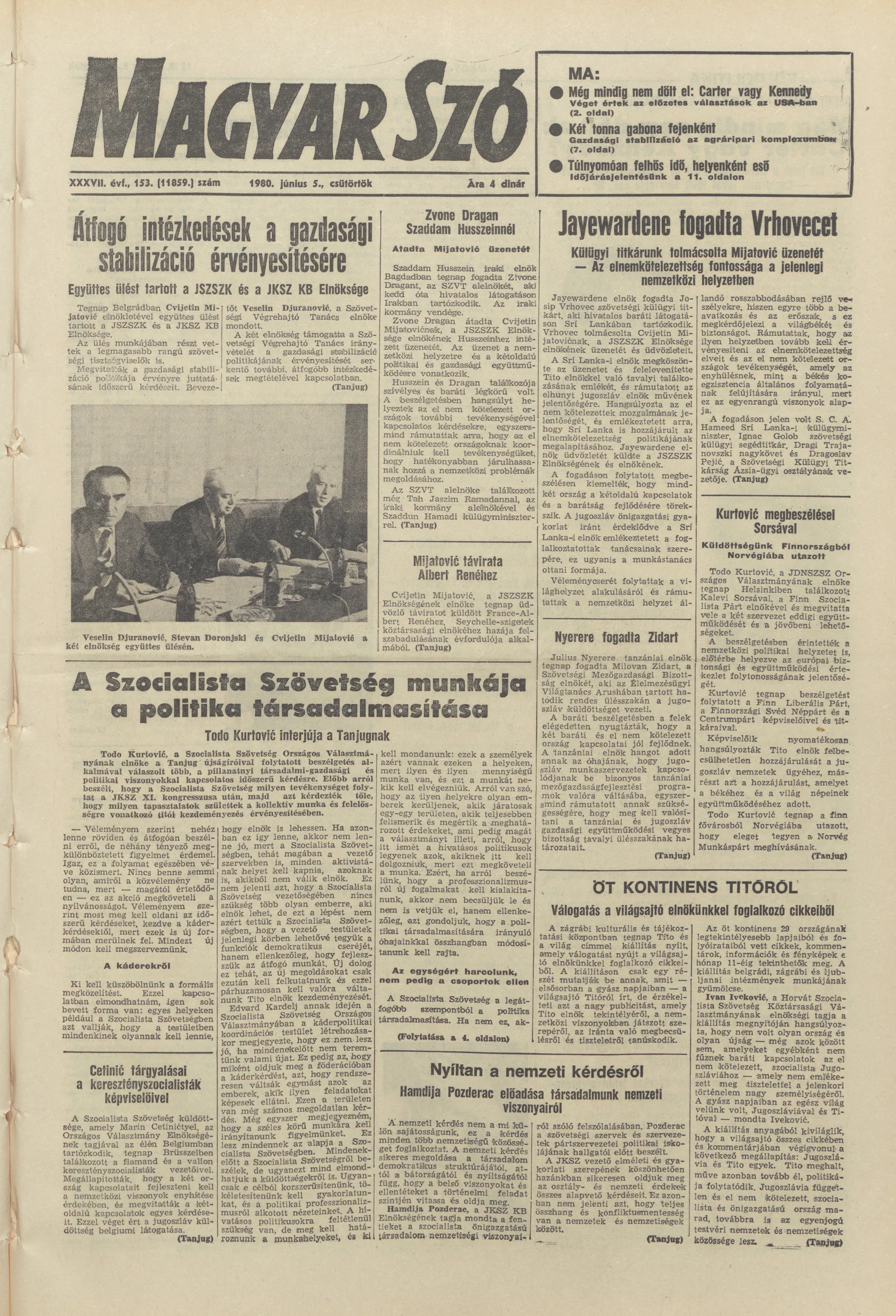 Magyar Szó, 37. évf. 1980. június 5. 153. sz. 1–20. oldal
