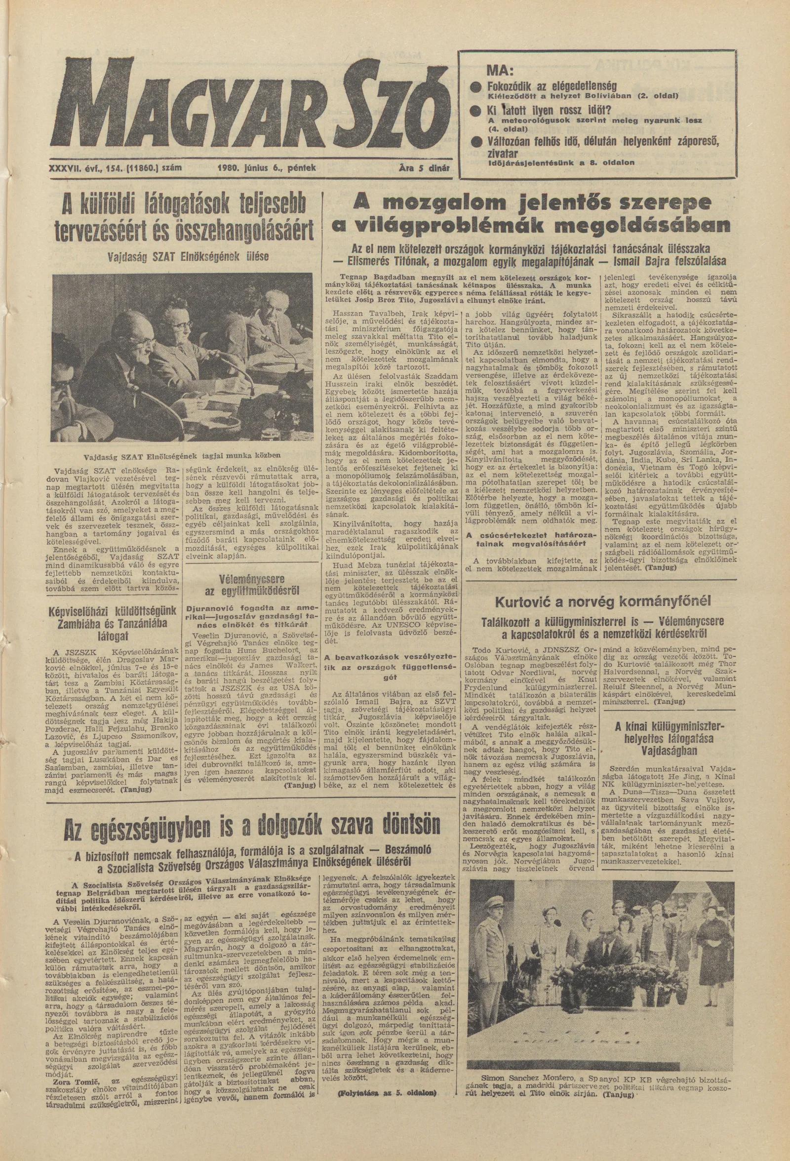 Magyar Szó, 37. évf. 1980. június 6. 154. sz. 1–12. oldal