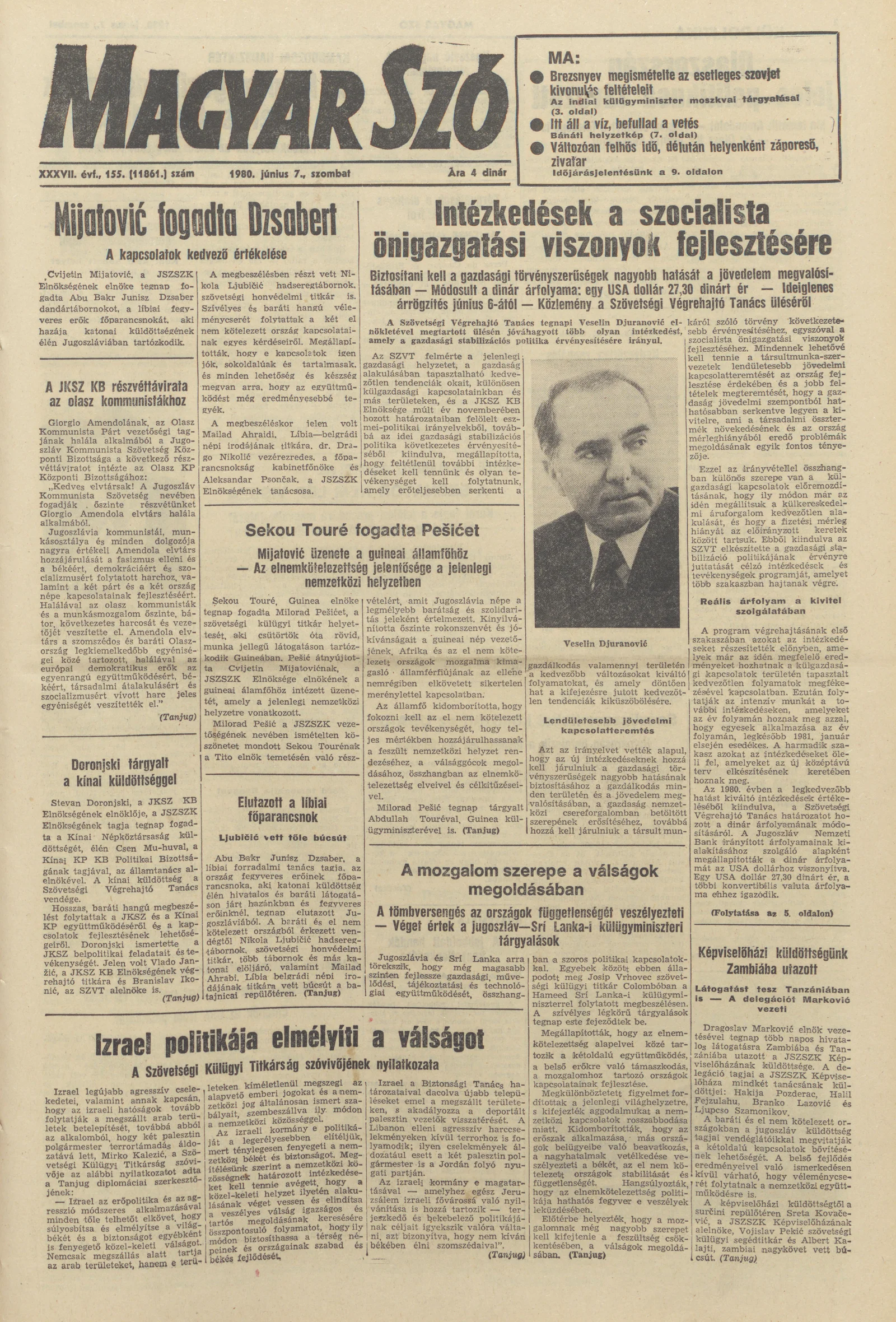 Magyar Szó, 37. évf. 1980. június 7. 155. sz. 1–20. oldal
