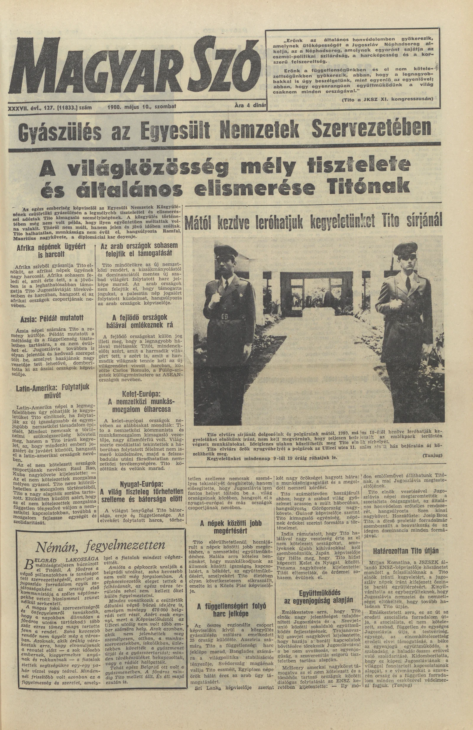 Magyar Szó, 37. évf. 1980. május 10. 127. sz. 1–20. oldal