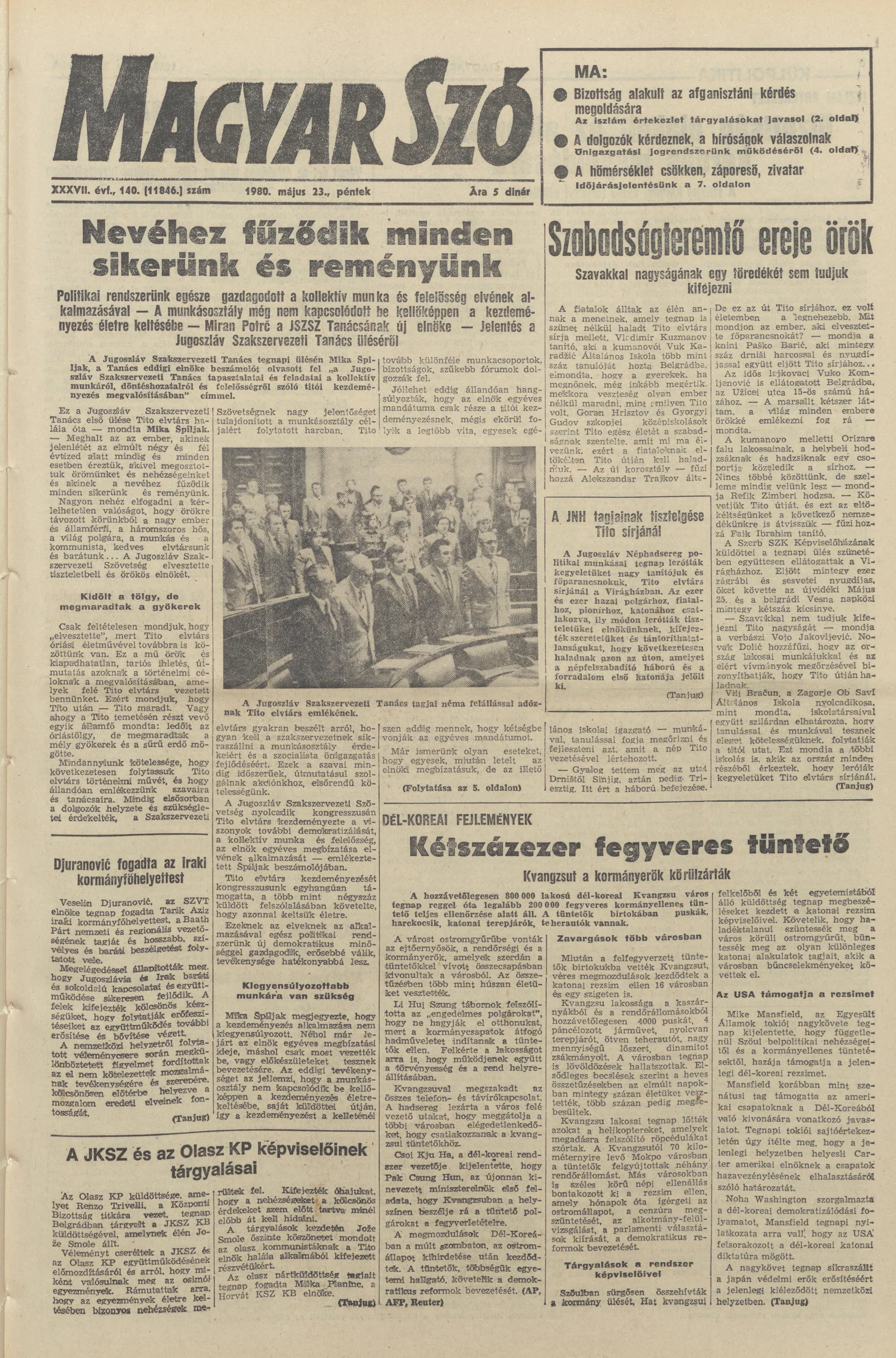 Magyar Szó, 37. évf. 1980. május 23. 140. sz. 1–20. oldal