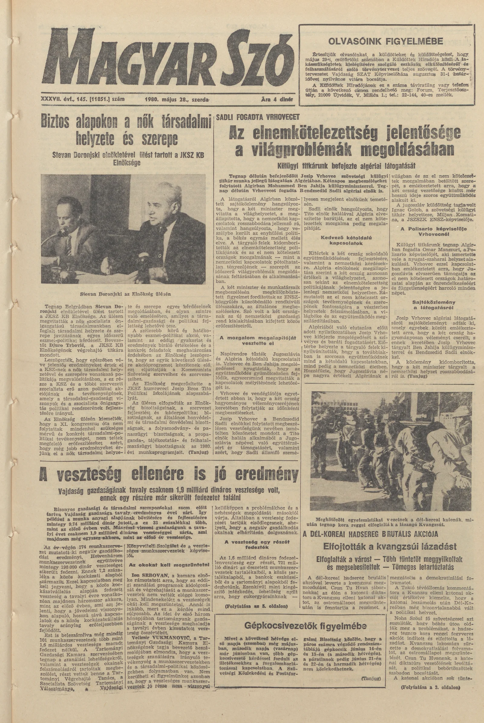 Magyar Szó, 37. évf. 1980. május 28. 145. sz. 1–20. oldal