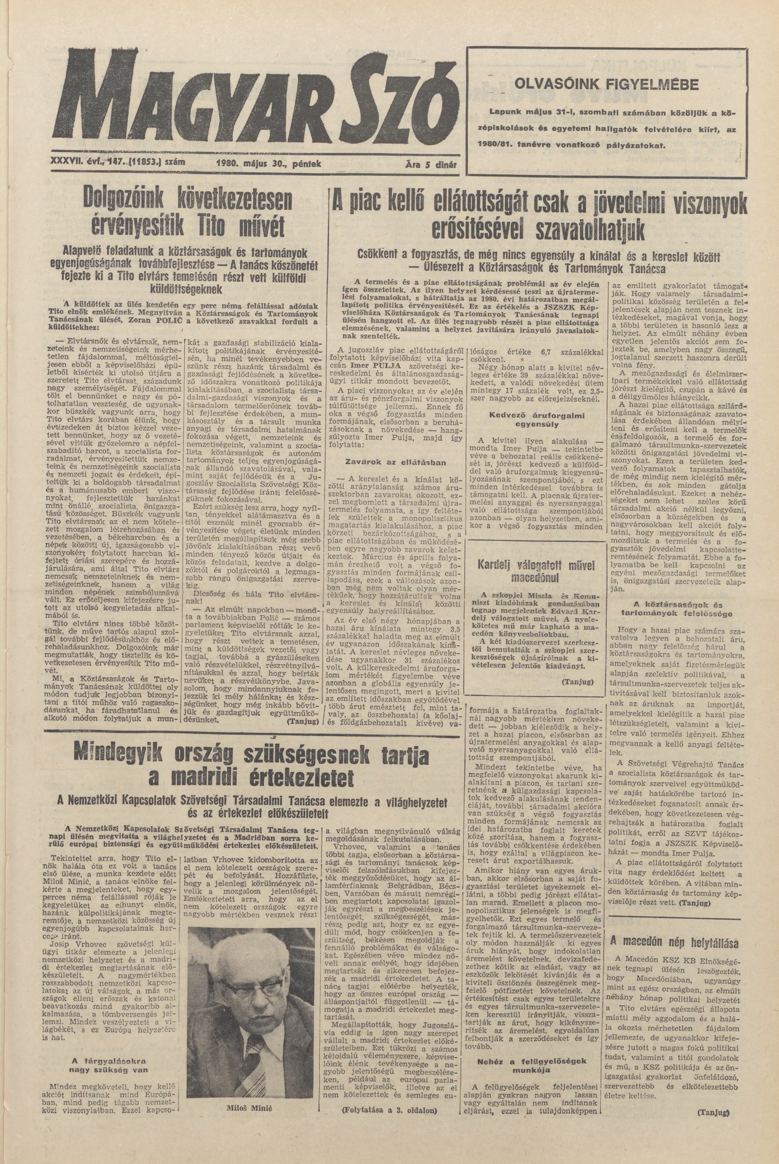 Magyar Szó, 37. évf. 1980. május 30. 147. sz. 1–20. oldal