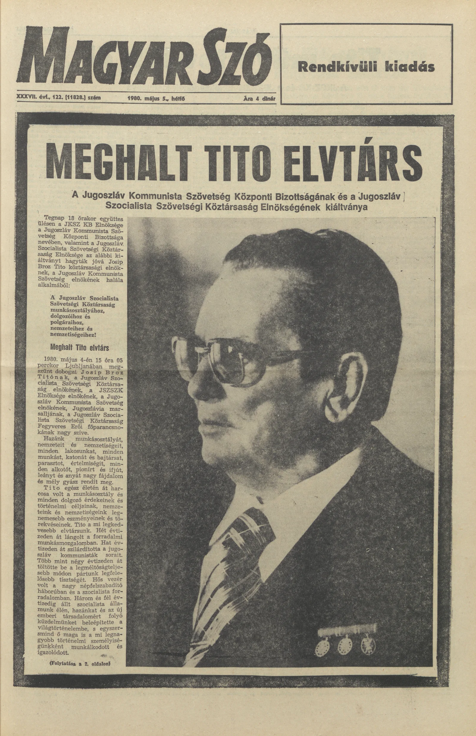 Magyar Szó, 37. évf. 1980. május 5. 122. sz. 1–12. oldal