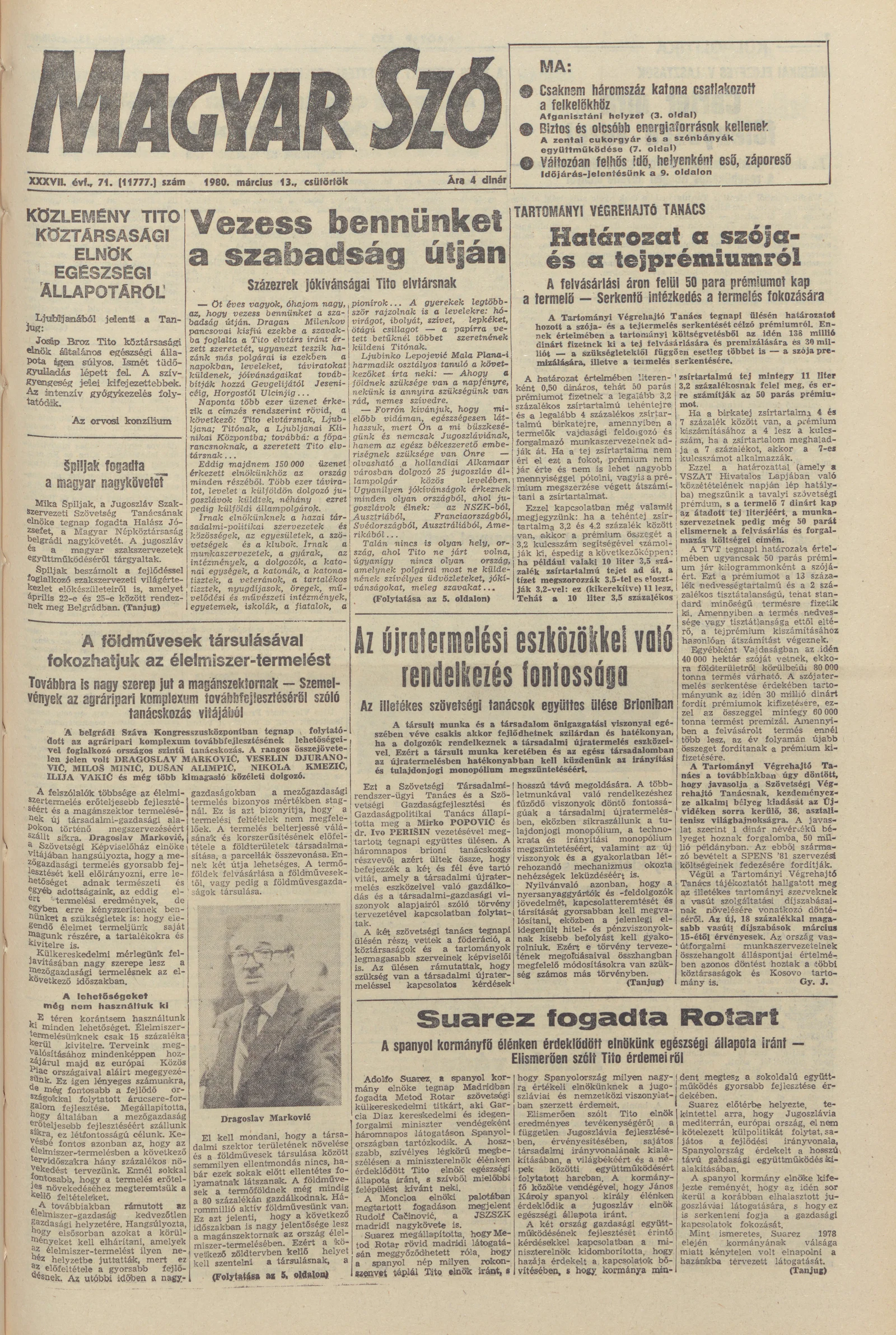 Magyar Szó, 37. évf. 1980. március 13. 71. sz. 1–20. oldal