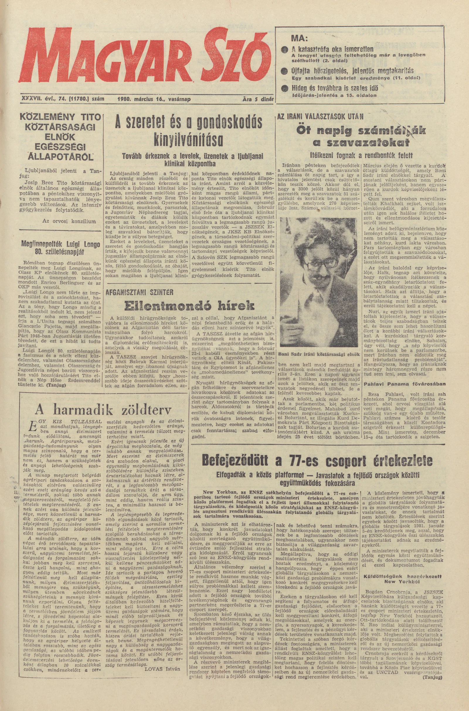 Magyar Szó, 37. évf. 1980. március 16. 74. sz. 1–32. oldal