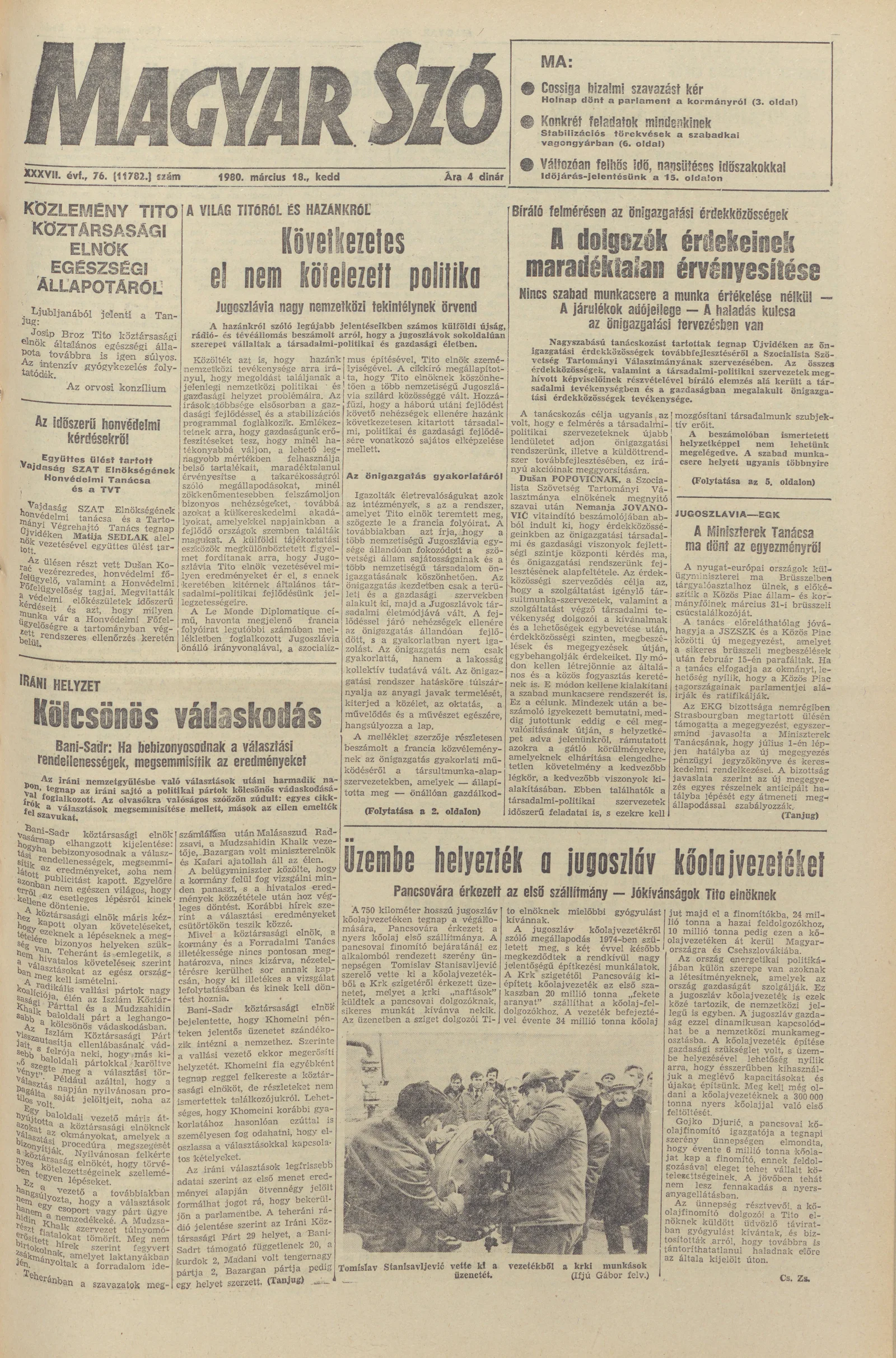 Magyar Szó, 37. évf. 1980. március 18. 76. sz. 1–20. oldal