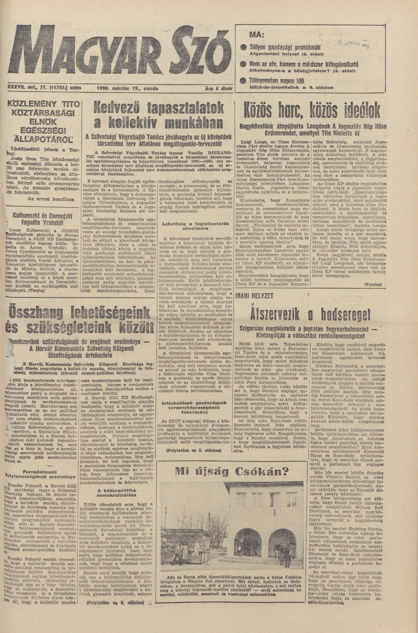 Magyar Szó, 37. évf. 1980. március 19. 77. sz. 1–20. oldal
