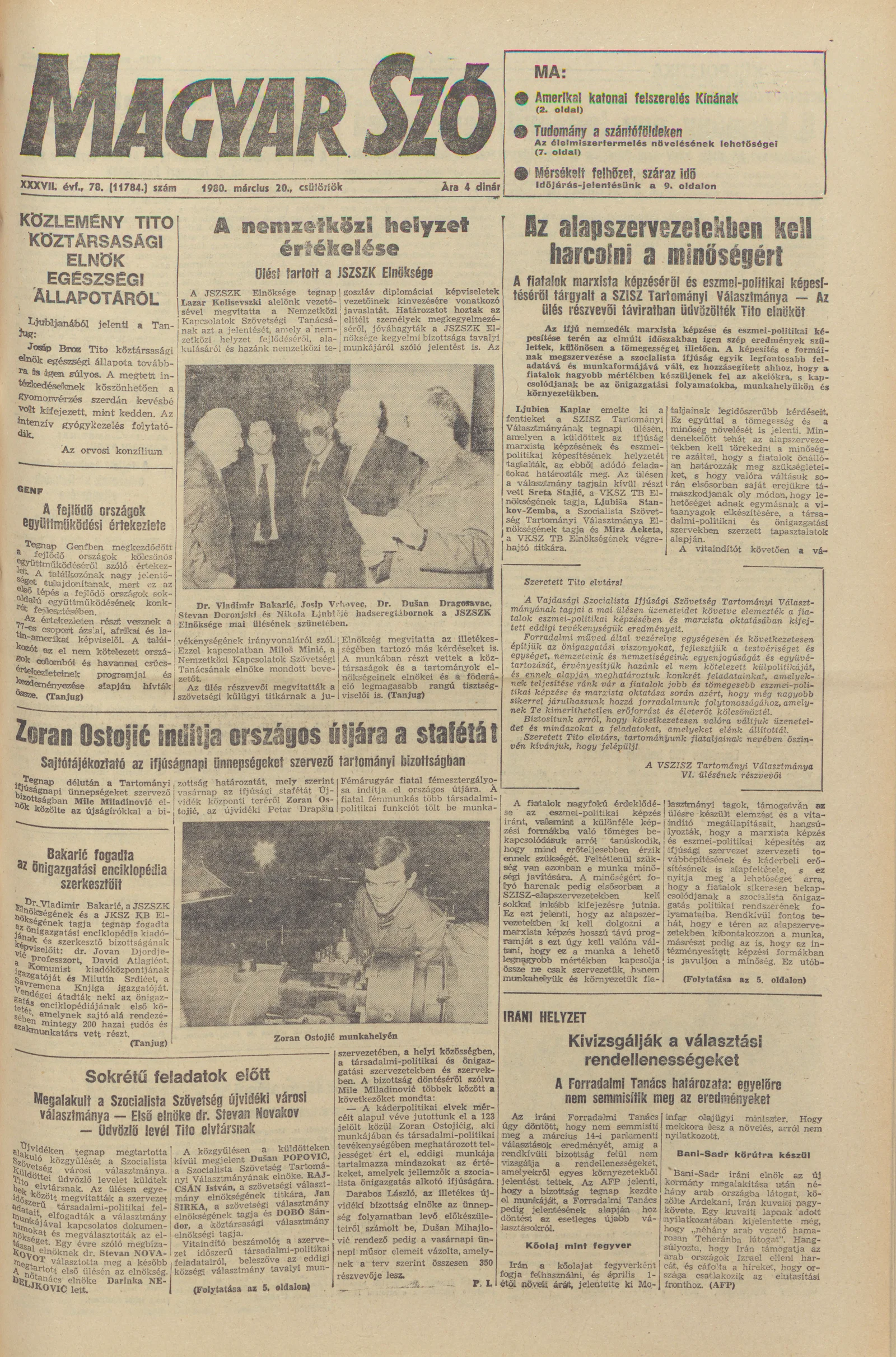 Magyar Szó, 37. évf. 1980. március 20. 78. sz. 1–20. oldal