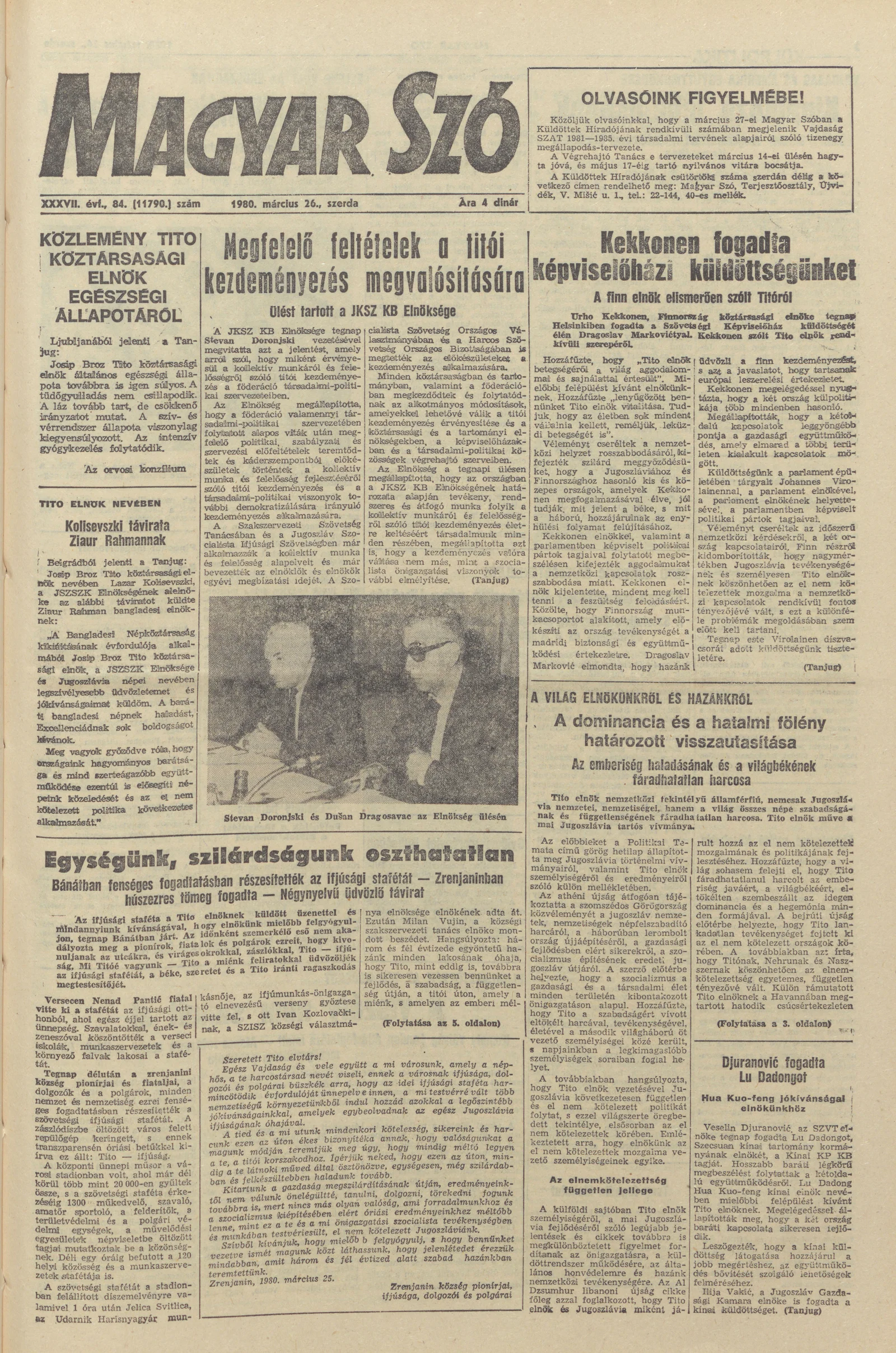 Magyar Szó, 37. évf. 1980. március 26. 84. sz. 1–20. oldal