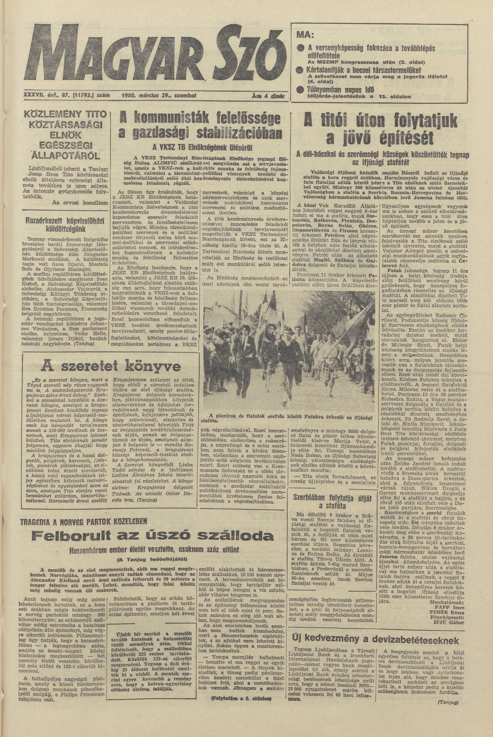 Magyar Szó, 37. évf. 1980. március 29. 87. sz. 1–20. oldal