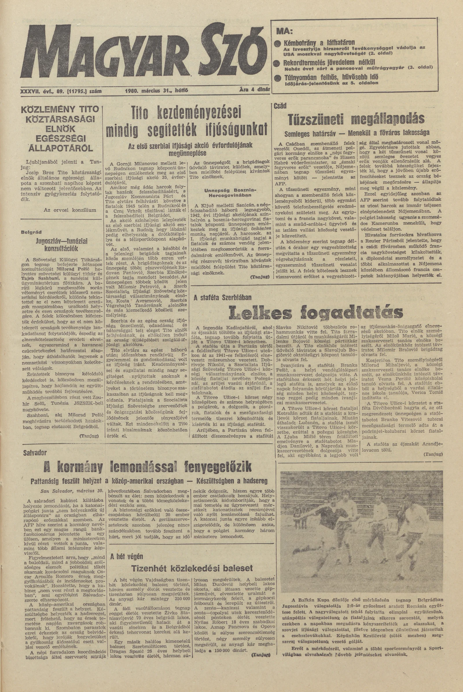 Magyar Szó, 37. évf. 1980. március 31. 89. sz. 1–16. oldal