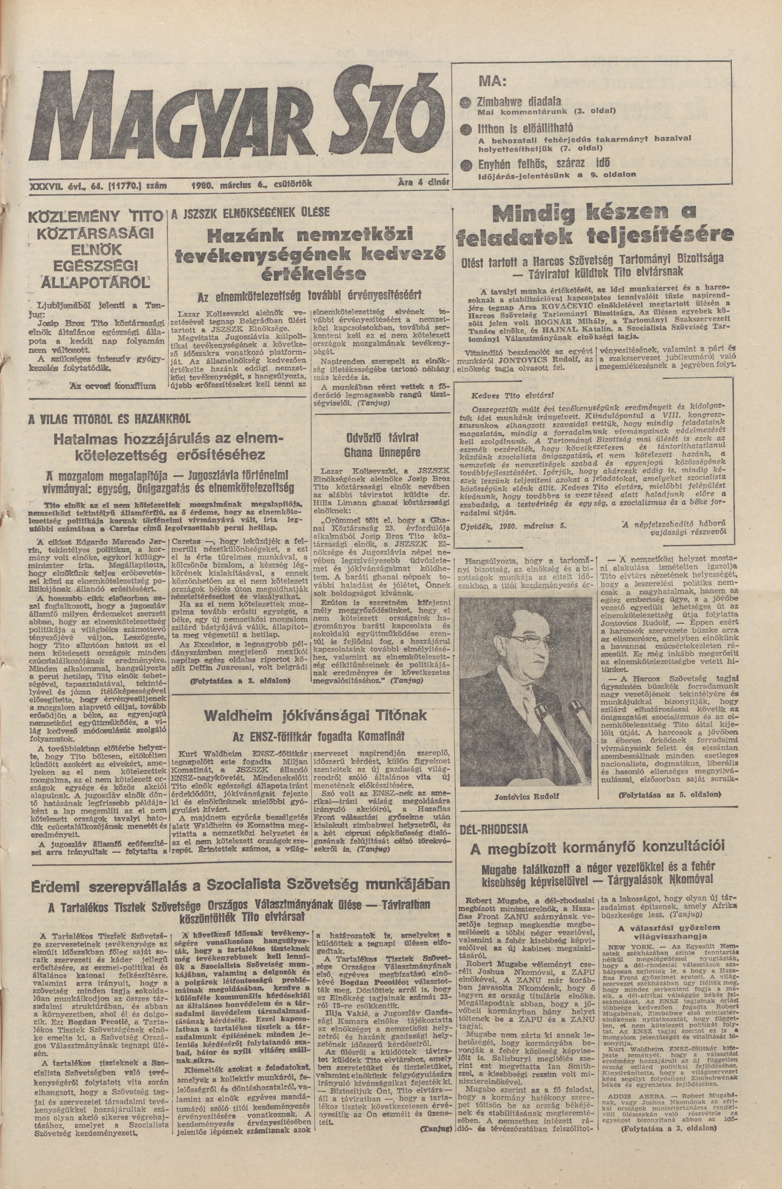 Magyar Szó, 37. évf. 1980. március 6. 64. sz. 1–20. oldal