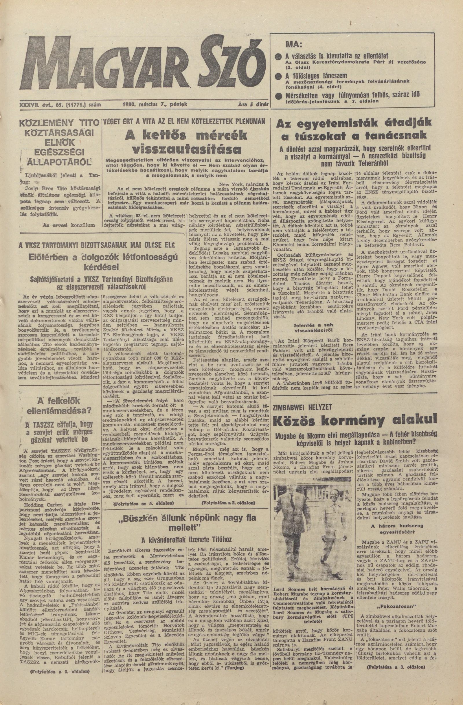 Magyar Szó, 37. évf. 1980. március 7. 65. sz. 1–20. oldal